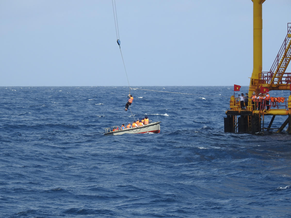 Sau đây là một số hình ảnh mà chúng tôi ghi nhận tại nhà giàn DK1/12 và DK1/14 ở bãi cạn Tư Chính nằm trên thềm lục địa phía Nam khi đoàn công tác sử dụng dây để lên nhà giàn.