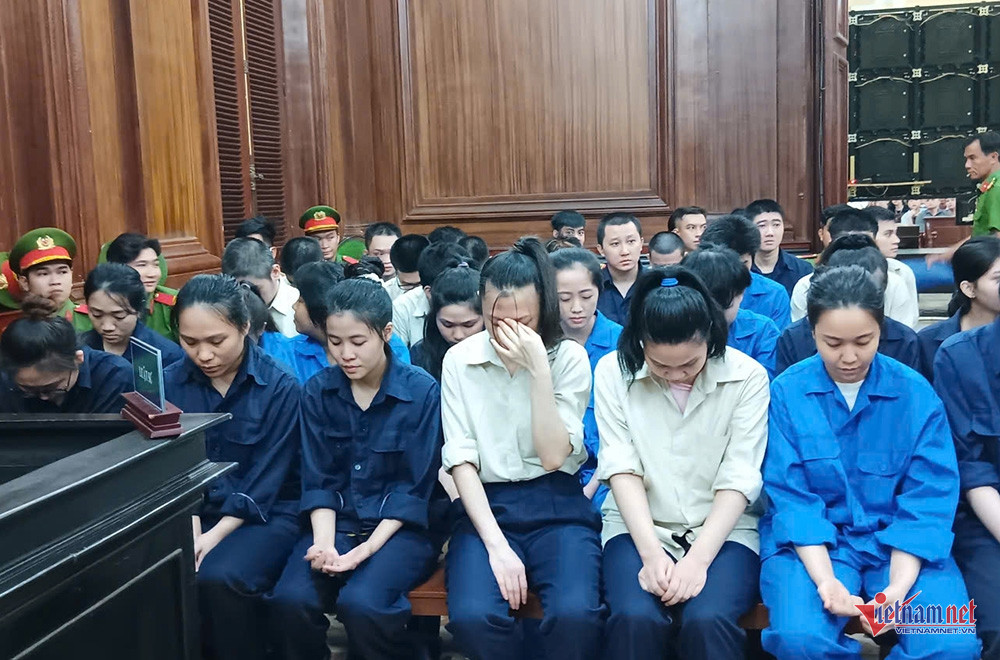 Sau 2 ngày xét xử, hôm nay (27/2), TAND TPHCM tuyên phạt bị cáo Hoàng Trọng Vỹ (41 tuổi, ngụ TPHCM) 16 năm tù; Nguyễn Thị Kim Chung (40 tuổi, ngụ TPHCM) 14 năm tù; Lương Thị Thanh Hằng (37 tuổi, ngụ TPHCM) và Nguyễn Ngọc Hoài Bảo (29 tuổi, ngụ Lâm Đồng) mỗi bị cáo 13 năm tù cùng về tội Sử dụng mạng máy tính, mạng viễn thông, phương tiện điện tử thực hiện hành vi chiếm đoạt tài sản.