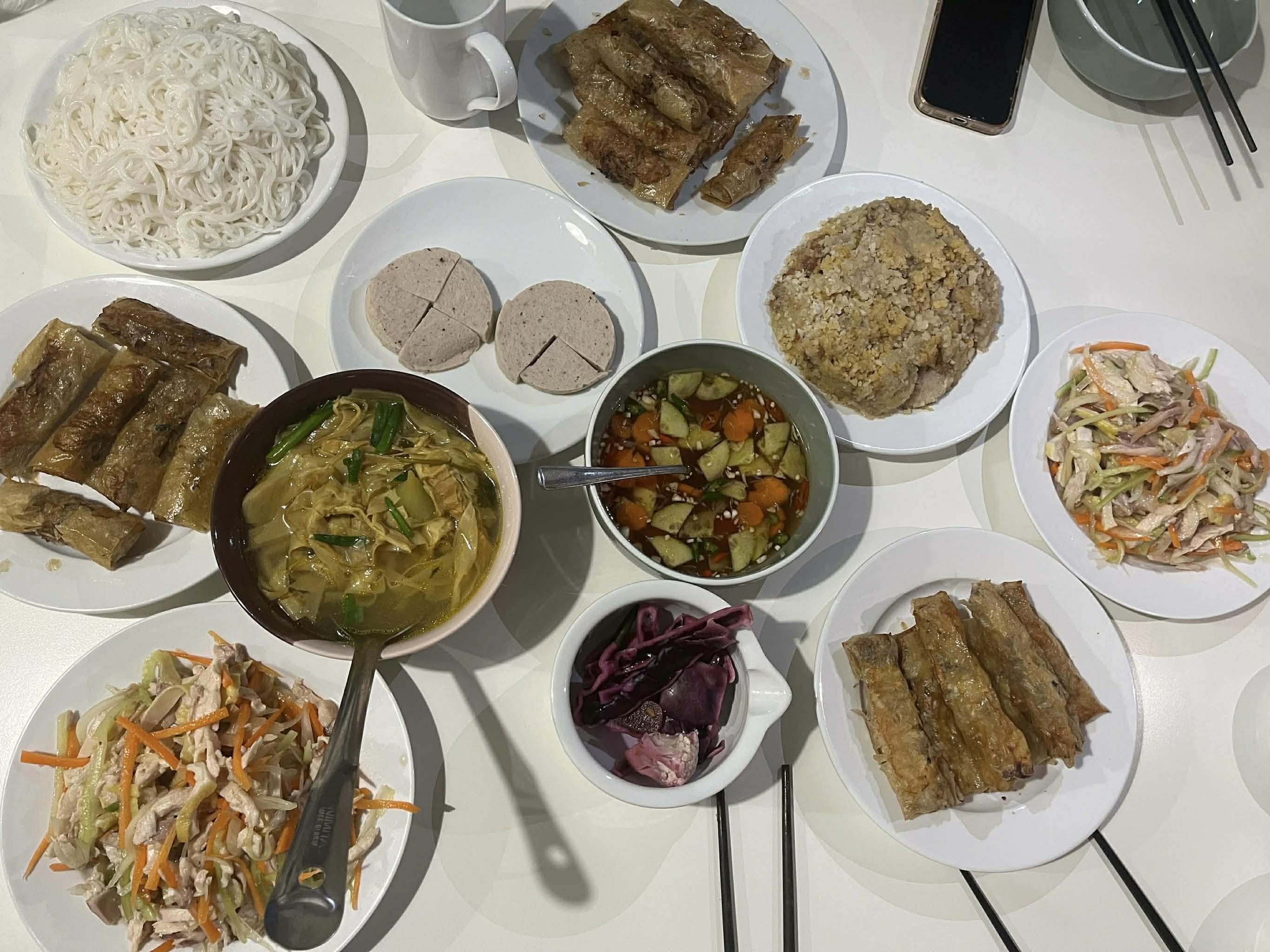 “Chúng em làm nem, nấu các món ăn Việt và giới thiệu ý nghĩa Tết cho bạn bè. Dù xa nhà nhưng cảm giác rất vui vì được cùng nhau tái hiện không khí xuân Việt giữa một thành phố nhỏ Ireland”, Linh chia sẻ.