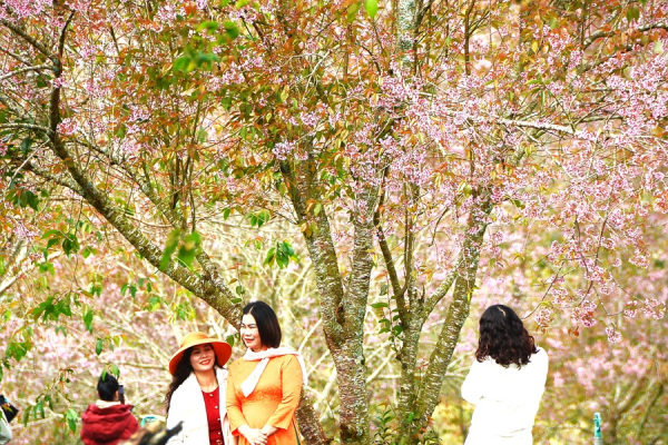 Khi những cơn mưa lùi xa, cao nguyên trở nên lạnh nhiều, nắng vàng rải khắp phố phường cũng là lúc trên từng cây mai anh đào trơ trọi, khẳng khiu đồng loạt bung nụ, nở hoa.