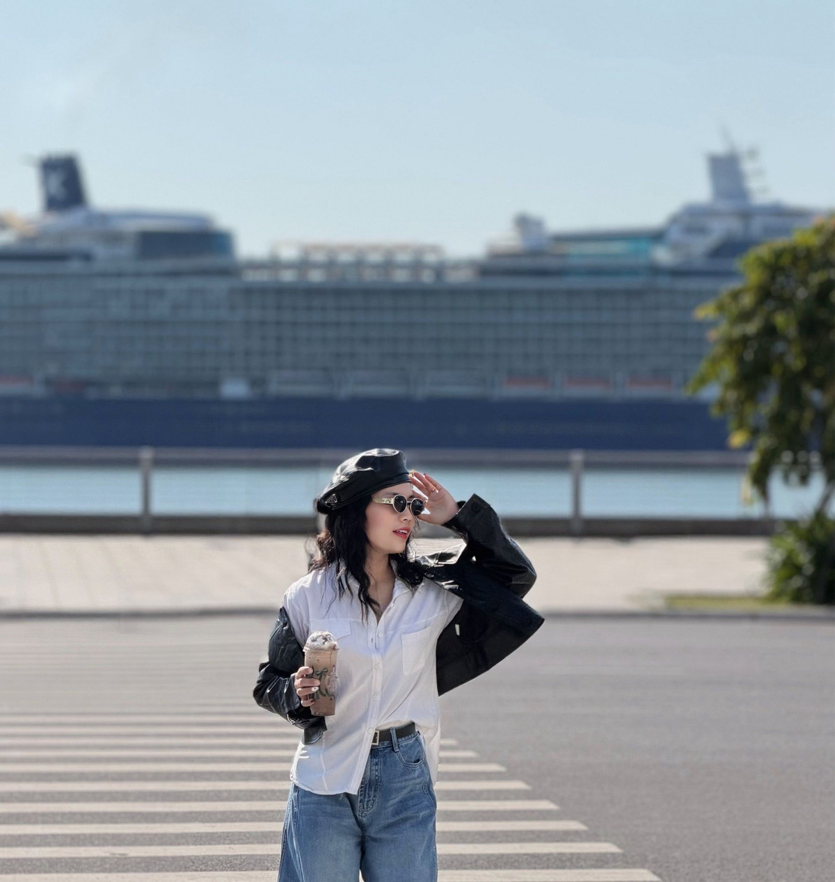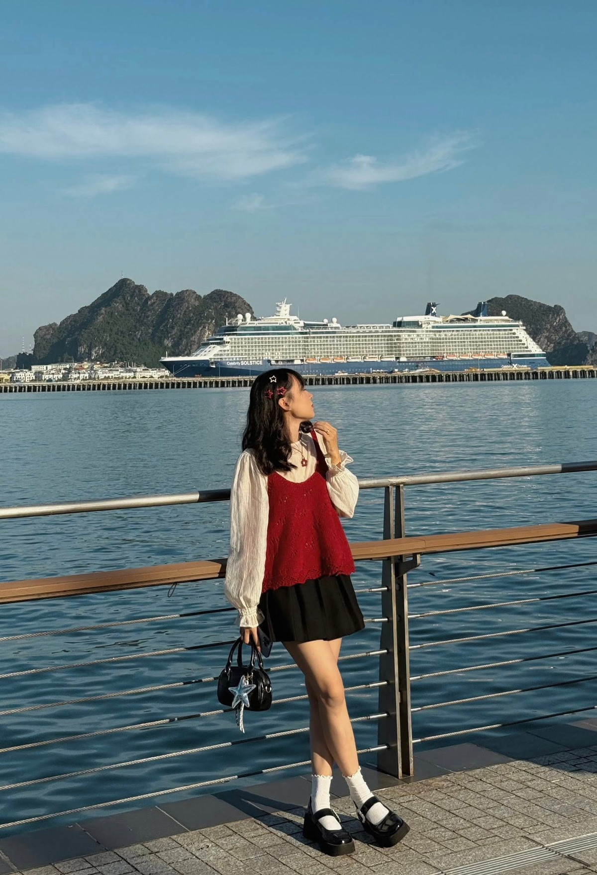 Sự kết hợp giữa cảnh quan biển – đô thị – tàu biển khổng lồ khiến Hạ Long trở thành “phim trường ngoài trời” lý tưởng cho những ai yêu thích trào lưu chụp ảnh hiện đại, đặc biệt là phong cách Hong Kong. Ảnh Review Quảng Ninh