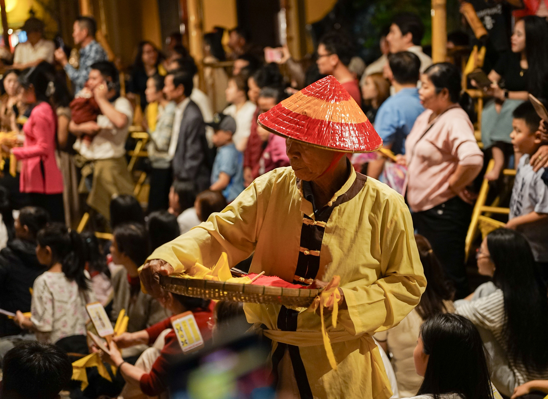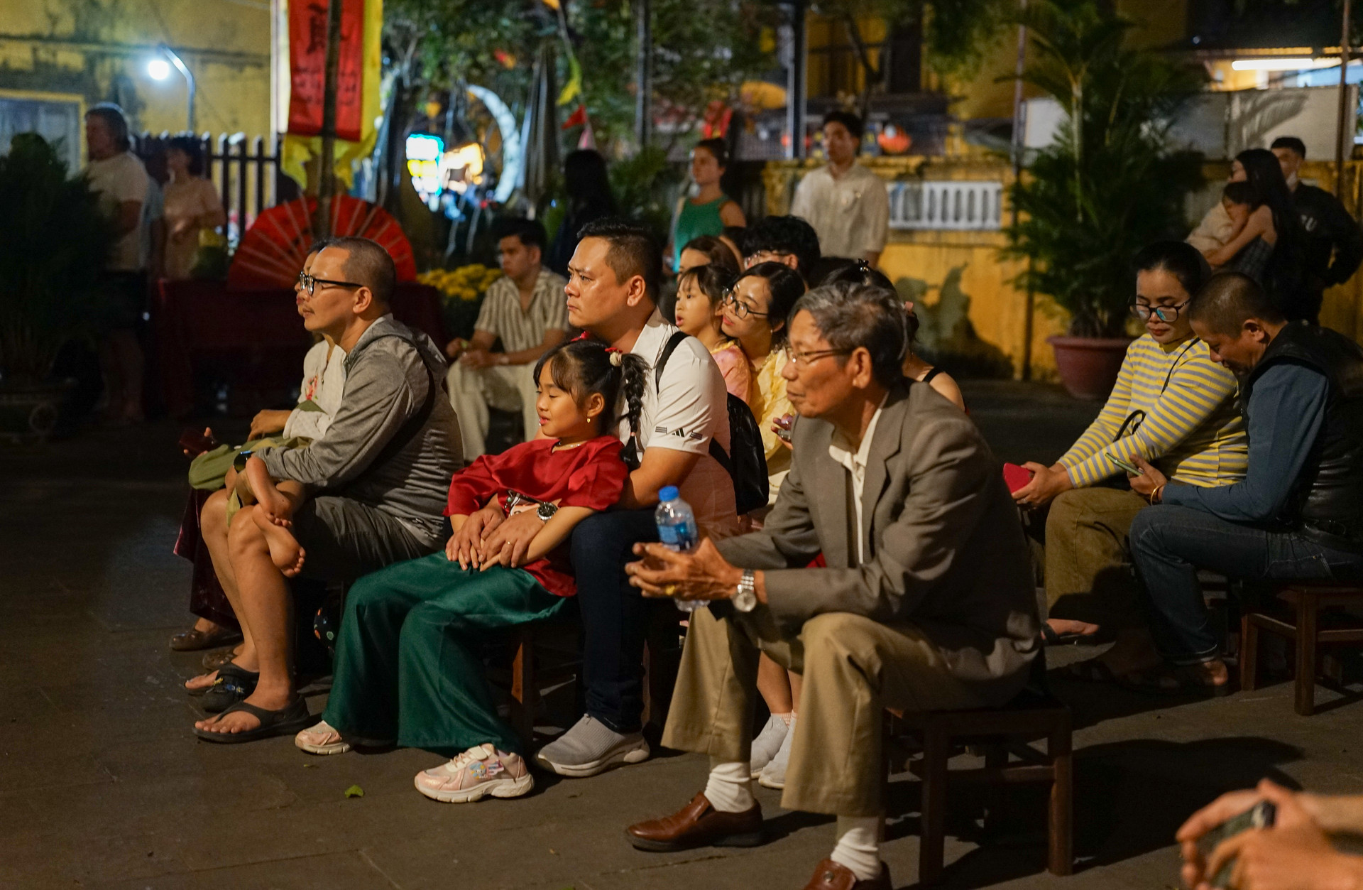 Du khách tập trung theo dõi các tiết mục hát bội. Ảnh: XUÂN SƠN