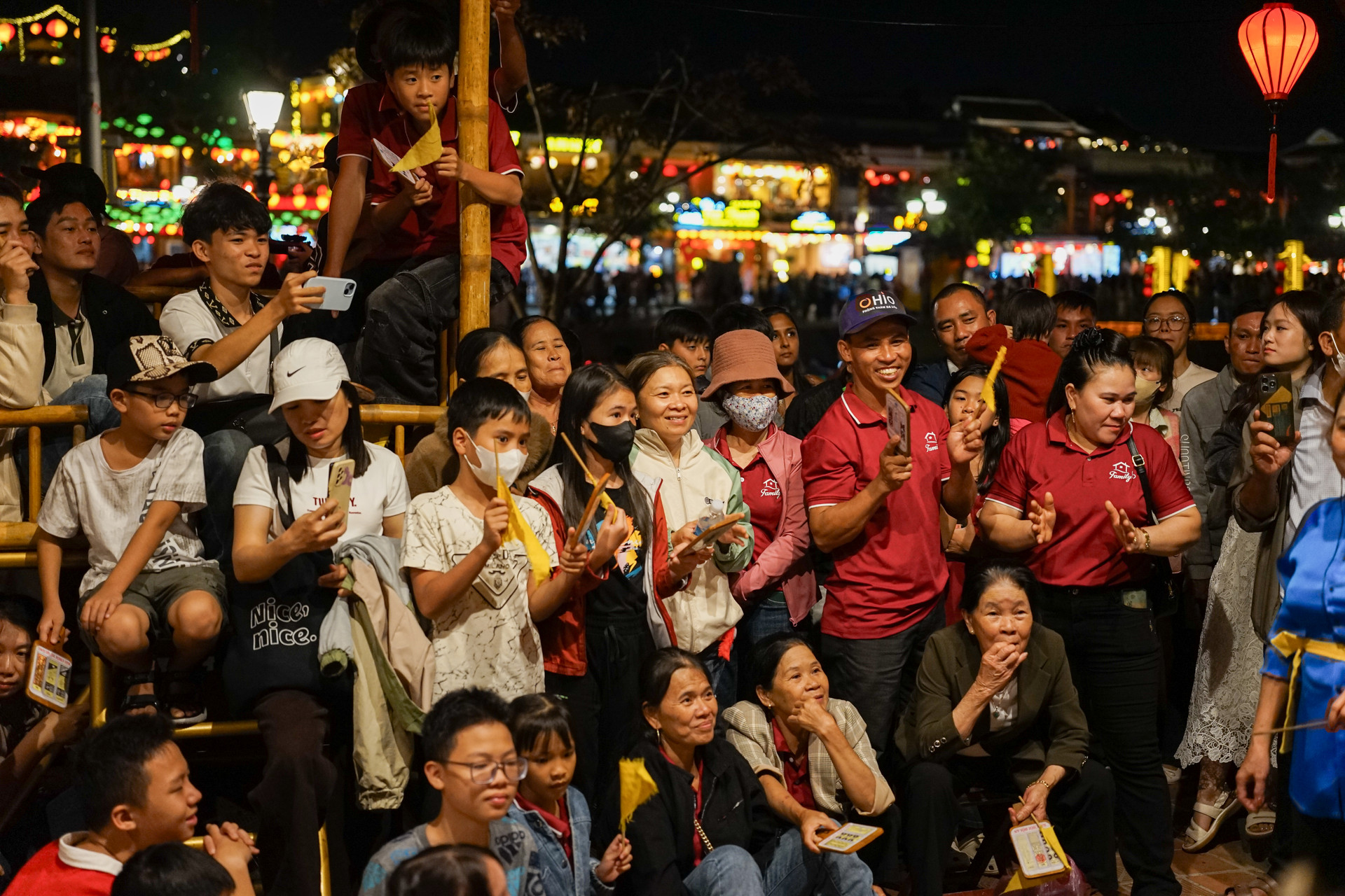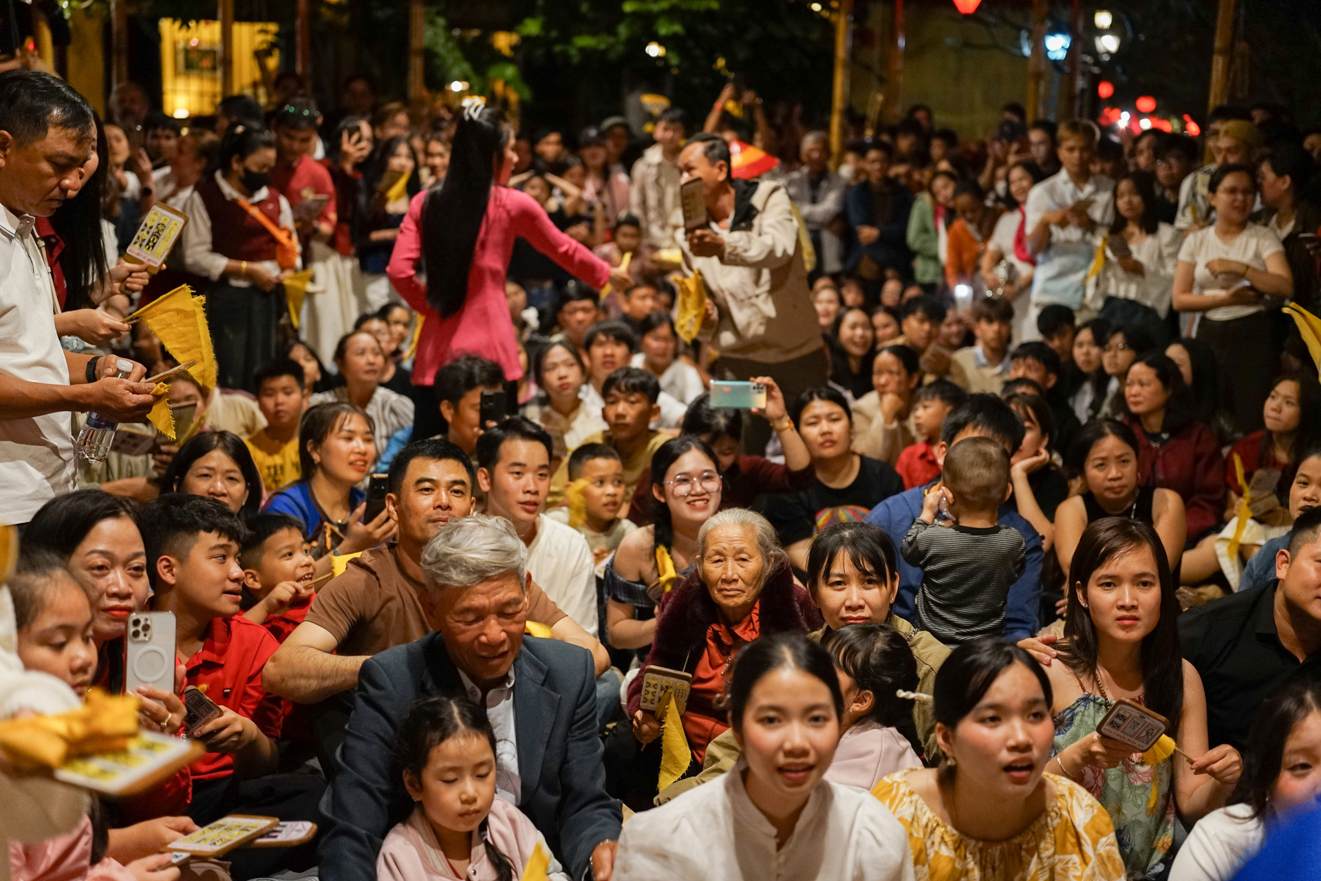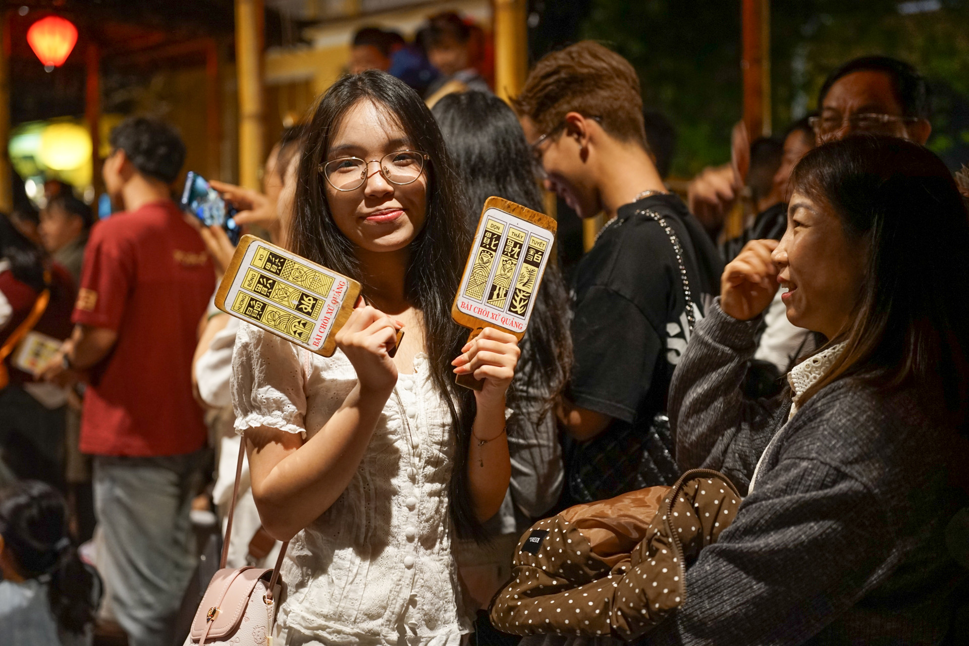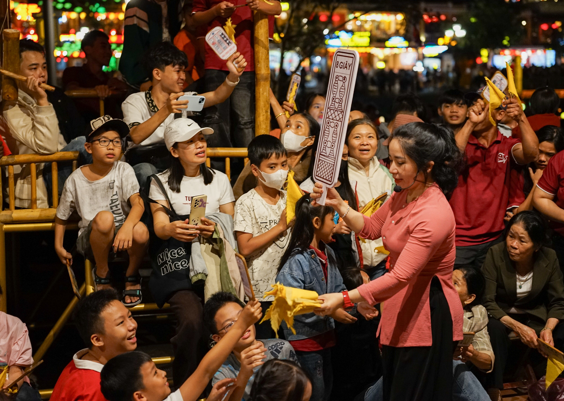 Trong không gian đêm phố cổ Hội An, các anh hiệu, chị hiệu mang đến cho du khách những câu hô dí dỏm, mộc mạc hòa theo nhịp phách. Ảnh: XUÂN SƠN