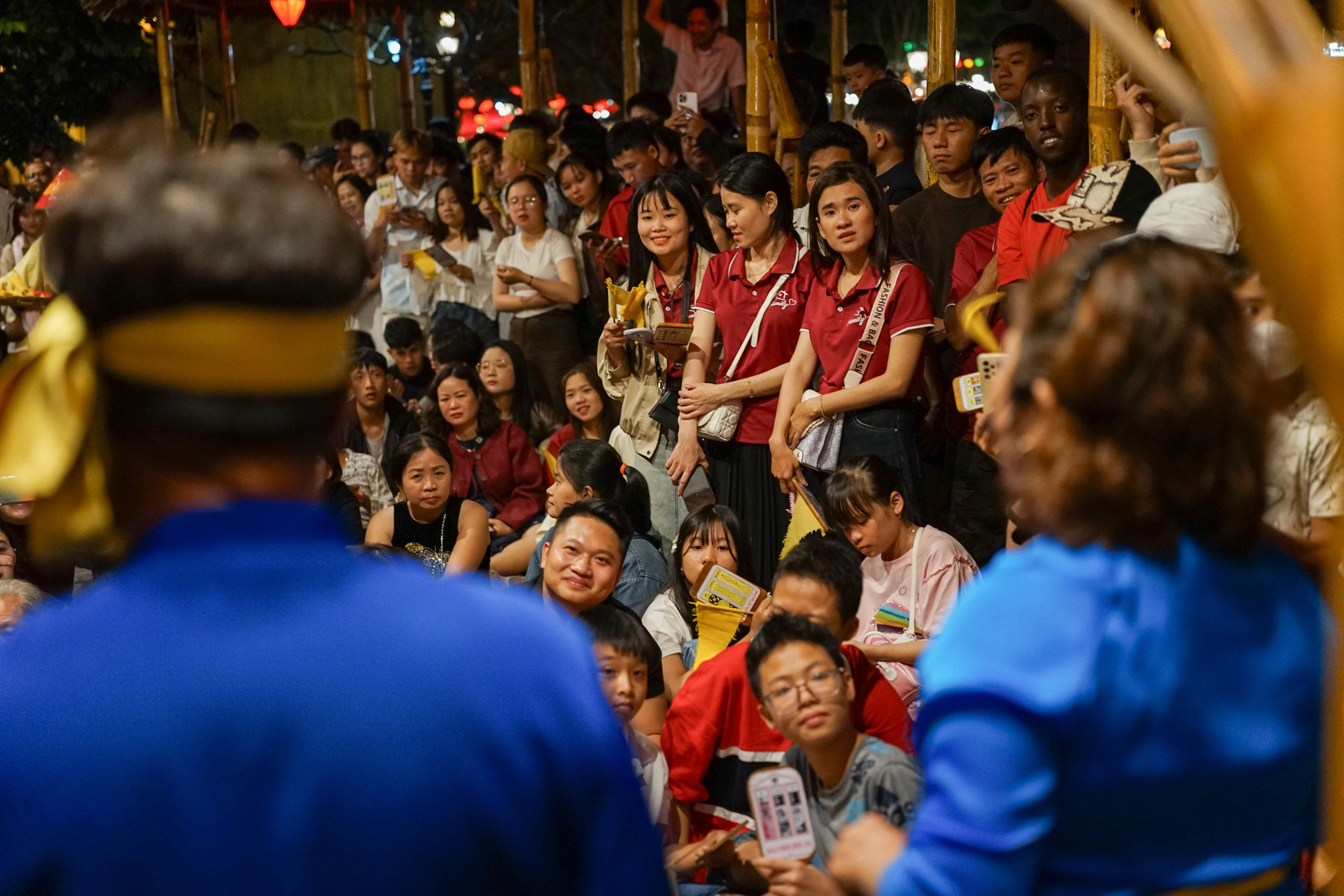 Du khách chăm chú lắng nghe các anh hiệu, chị hiệu hô bài với những làn điệu dí dỏm, vui tươi. Ảnh: XUÂN SƠN