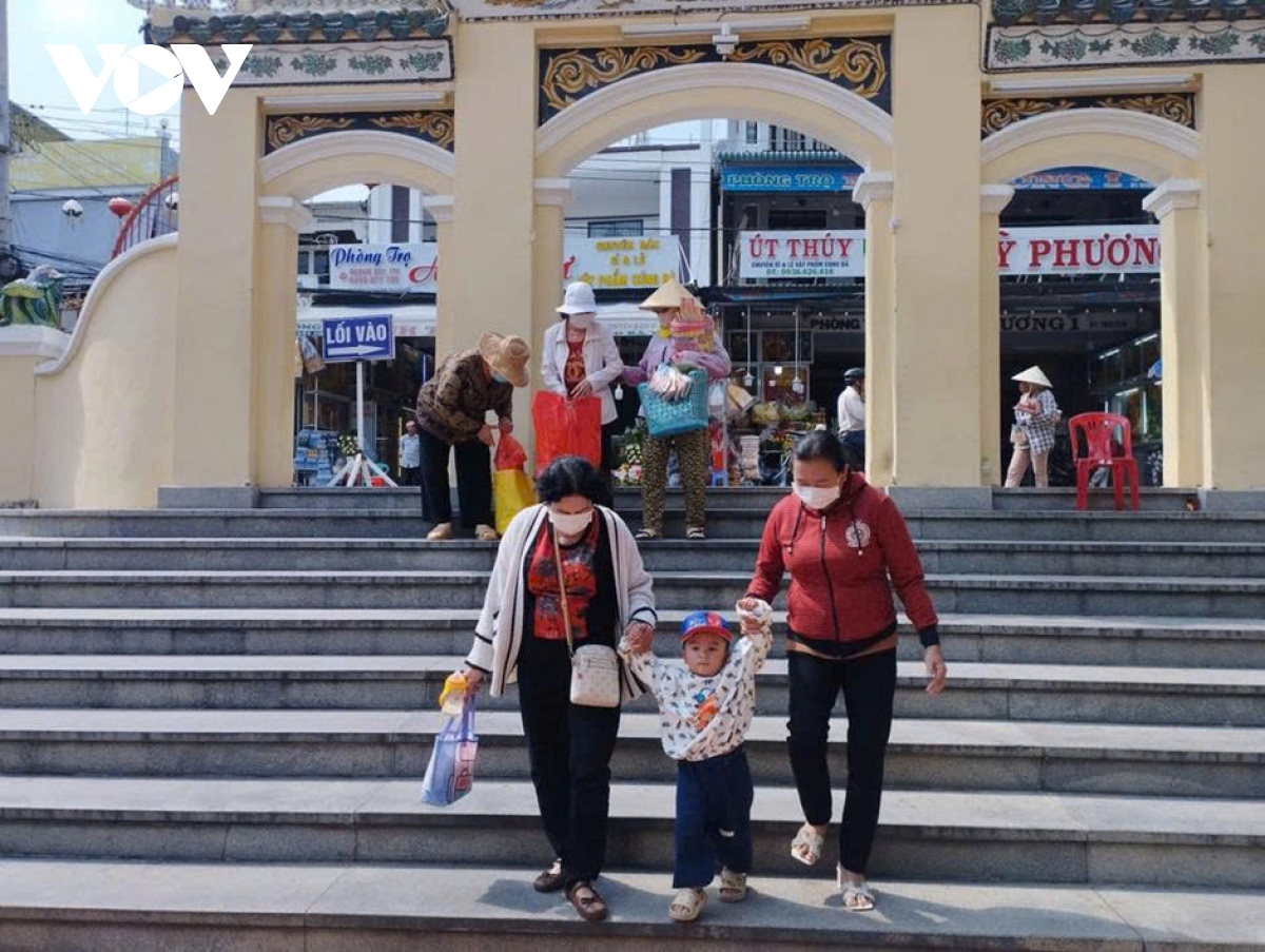 Người dân về Miếu Bà Chúa Xứ để dâng phẩm vật và cầu an.