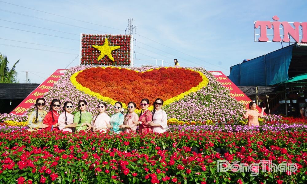 Biểu tượng “Trái tim Sa Đéc” được kết từ hàng ngàn bông hoa tiếp tục là điểm nhấn thu hút du khách từ Festival Hoa - Kiểng Sa Đéc lần thứ II đến Tết Nguyên đán.