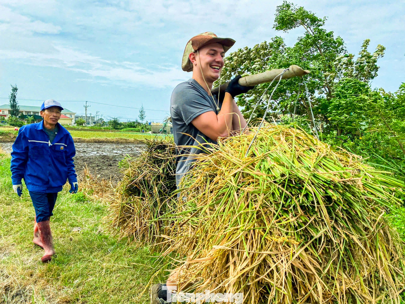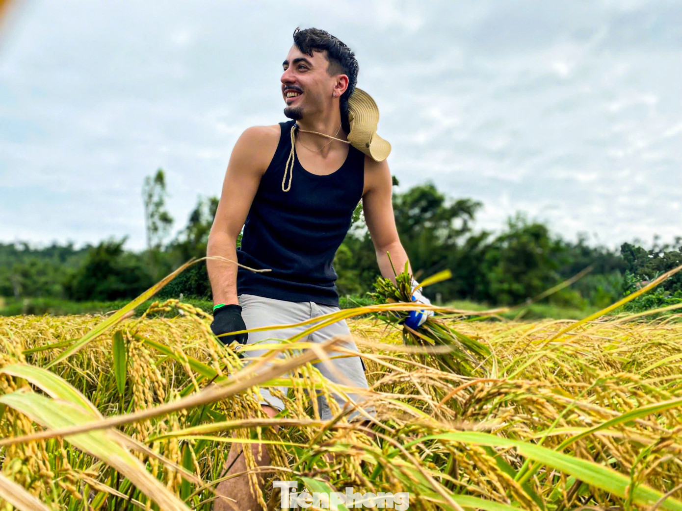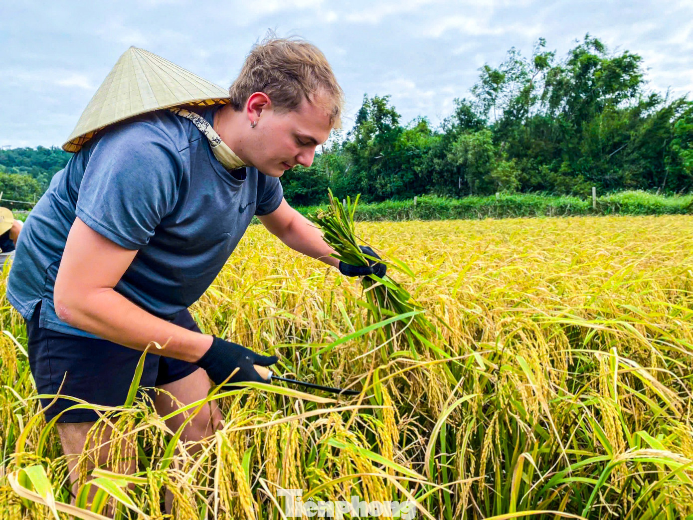 Buổi sáng, trên cánh đồng rộng bát ngát thuộc thôn Hải Tiến, Đặc khu Cô Tô, cả hai anh Tây được người dân địa phương hướng dẫn cách dùng liềm gặt lúa và tỏ ra thú vị với trải nghiệm này. Bà Bùi Thị Phượng - người dân thôn Hải Tiến - chia sẻ: “Thấy các bạn nước ngoài xuống ruộng gặt, tôi vừa ngạc nhiên vừa vui. Họ vụng về nhưng rất chăm chỉ, còn hỏi han cách làm sao cho đúng. Nhìn họ rất hào hứng khi được trải nghiệm làm nông dân”.