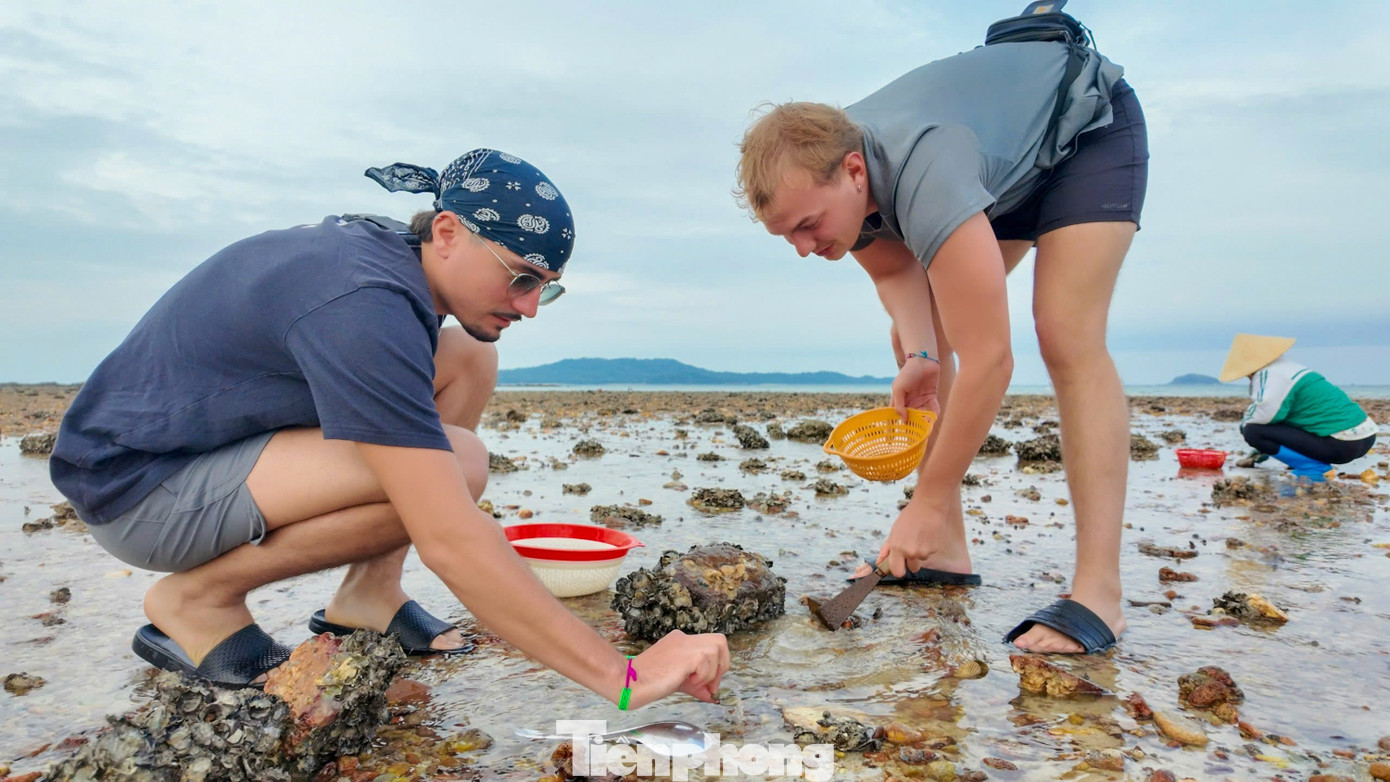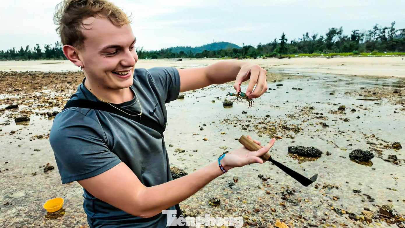 Vào buổi chiều cả hai du khách người Pháp được tham gia cùng người dân xuống biển bắt cua, bắt ốc và cào ngao. Antoine Habert hào hứng chia sẻ cảm xúc khi được trải nghiệm cào ngao, bắt ốc ở bãi triều cùng người dân đảo: "Tôi chưa từng nghĩ việc đi bắt ốc, cào ngao lại thú vị đến thế! Cảm giác được lội xuống bãi triều, tay cào cát tìm từng con ngao, con ốc cùng người dân thật vui. Họ cười rất nhiều, hướng dẫn tôi tận tình và coi tôi như một người bạn. Đây là một trải nghiệm tuyệt vời tại Việt Nam".