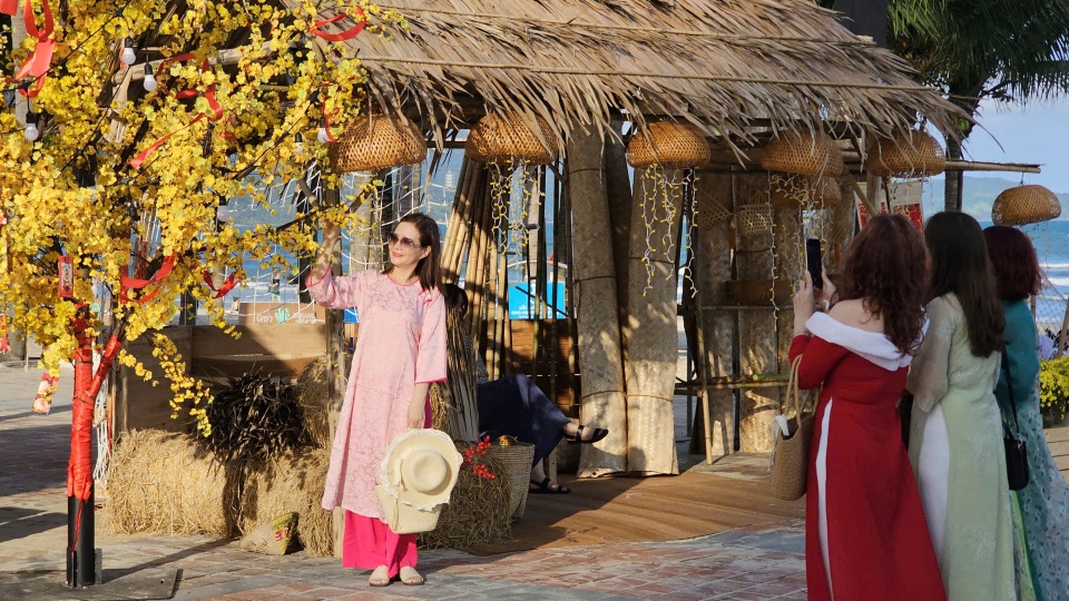 Không gian “Tết Làng Chài” tái hiện khung cảnh Tết truyền thống bằng các vật liệu mộc mạc như tre, nứa; trang trí tiểu cảnh nồi bánh chưng, bánh tét, hoa mai, hoa đào, đèn lồng; trưng bày tranh chủ đề “Đà Nẵng – Mùa xuân” nhằm quảng bá hình ảnh thành phố Đà Nẵng qua các địa danh nổi tiếng, đến những khoảnh khắc đời thường của người dân trong dịp Tết Nguyên Đán.