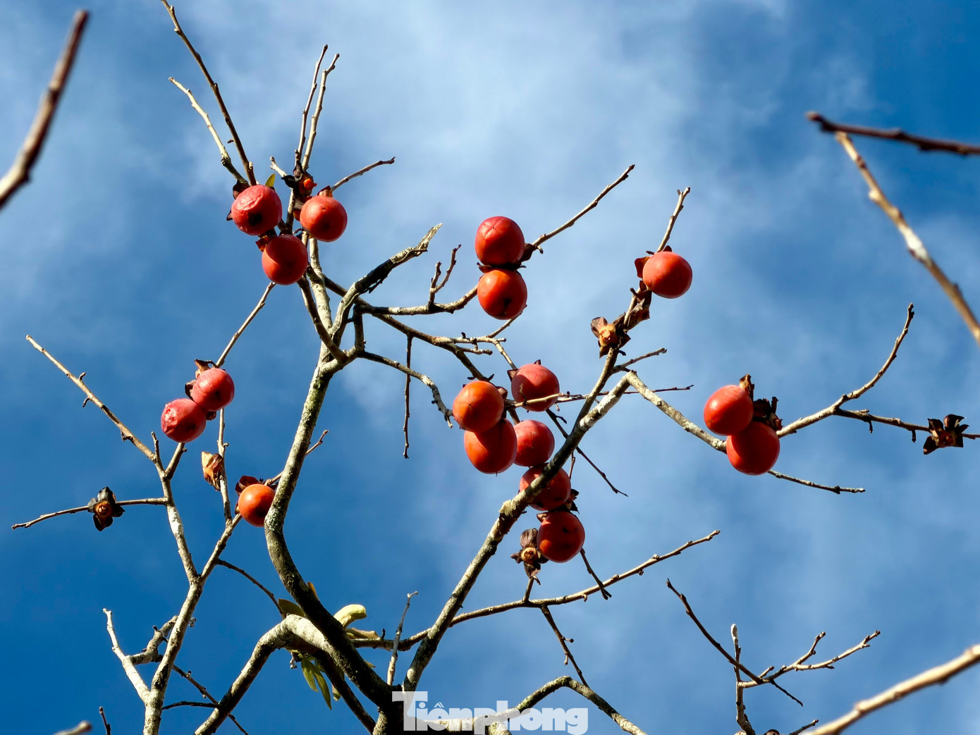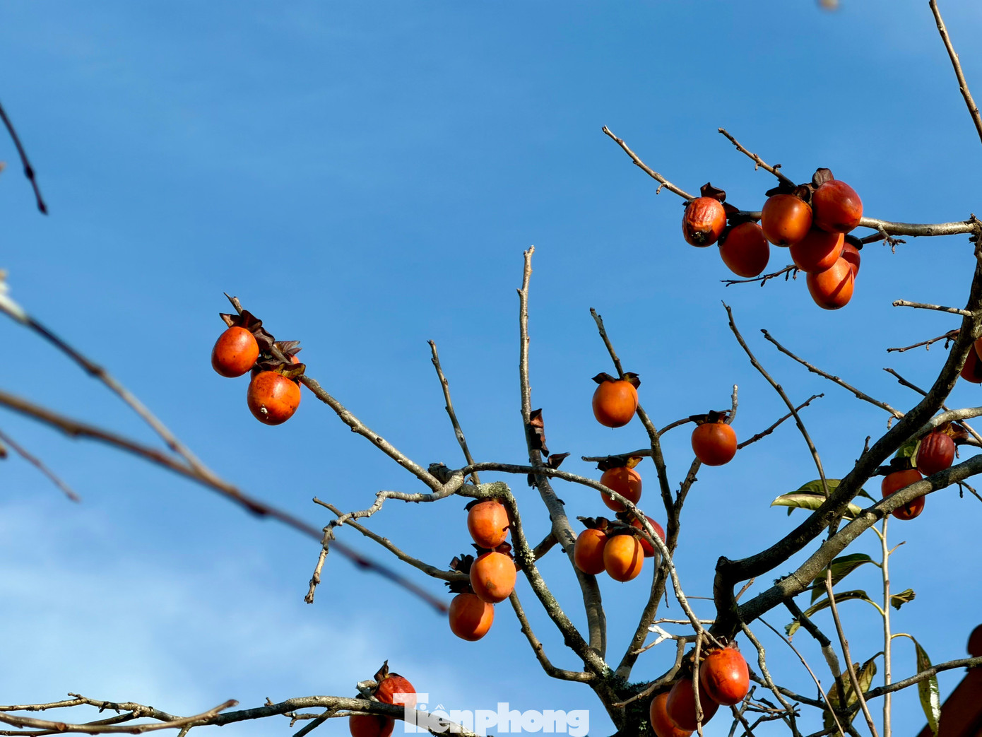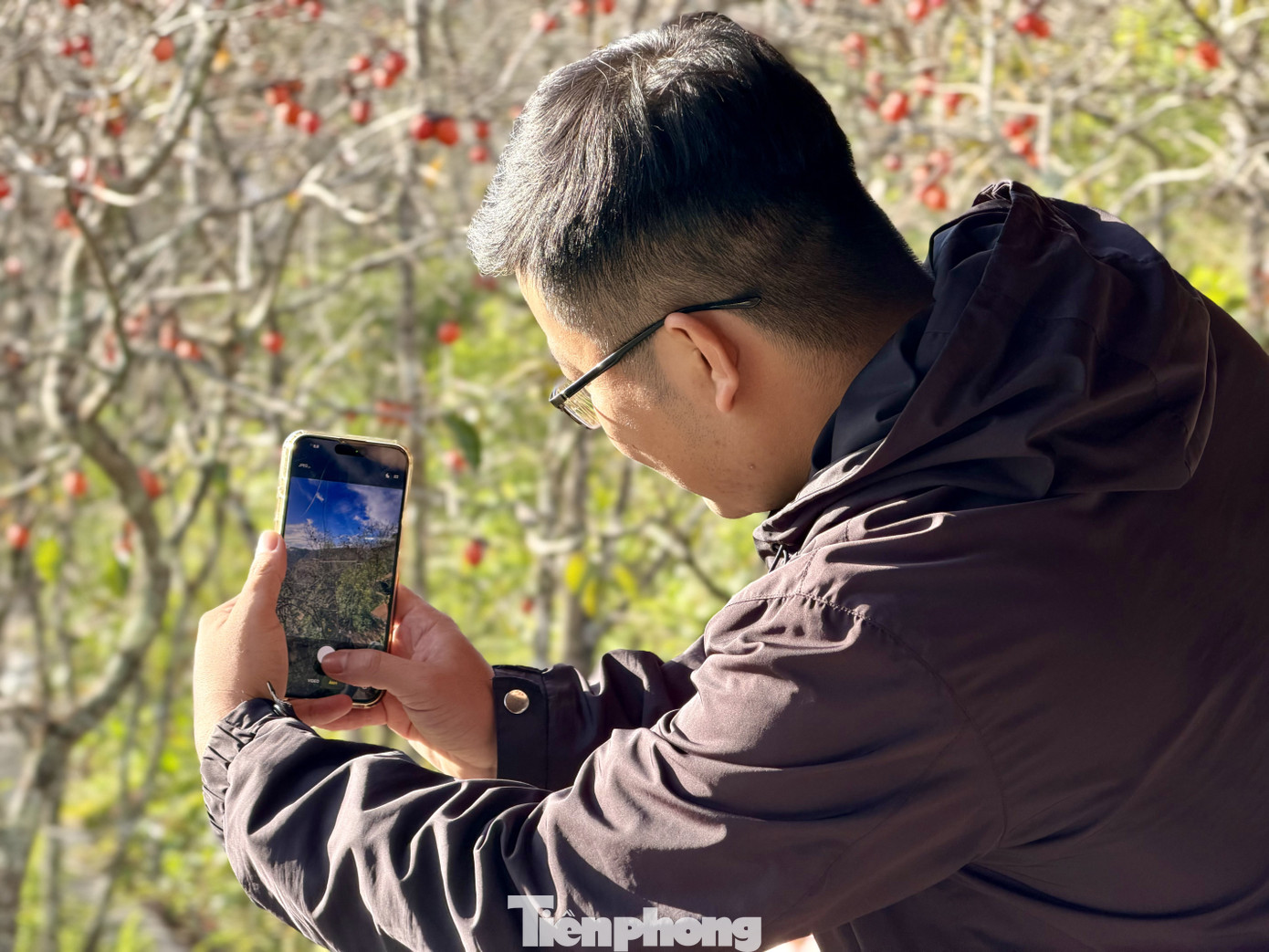 Trong sáng sớm giá lạnh, làn sương mỏng càng làm nổi bật màu cam đỏ của những chùm hồng chín mọng trên cành, khiến nhiều du khách phải dừng chân ngắm cảnh, ghi lại khoảnh khắc đẹp.