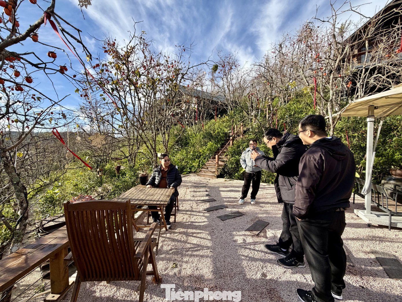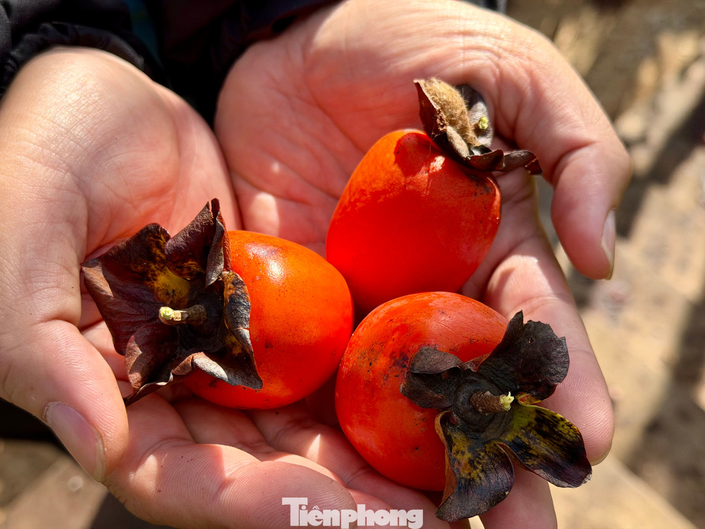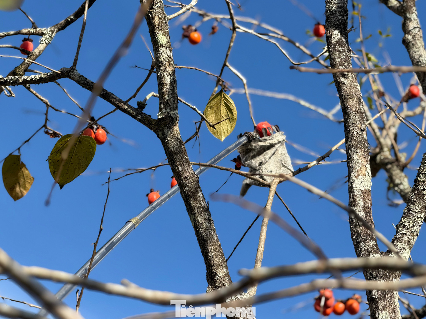 Trong sáng sớm giá lạnh, làn sương mỏng càng làm nổi bật màu cam đỏ của những chùm hồng chín mọng trên cành, khiến nhiều du khách phải dừng chân ngắm cảnh, ghi lại khoảnh khắc đẹp.