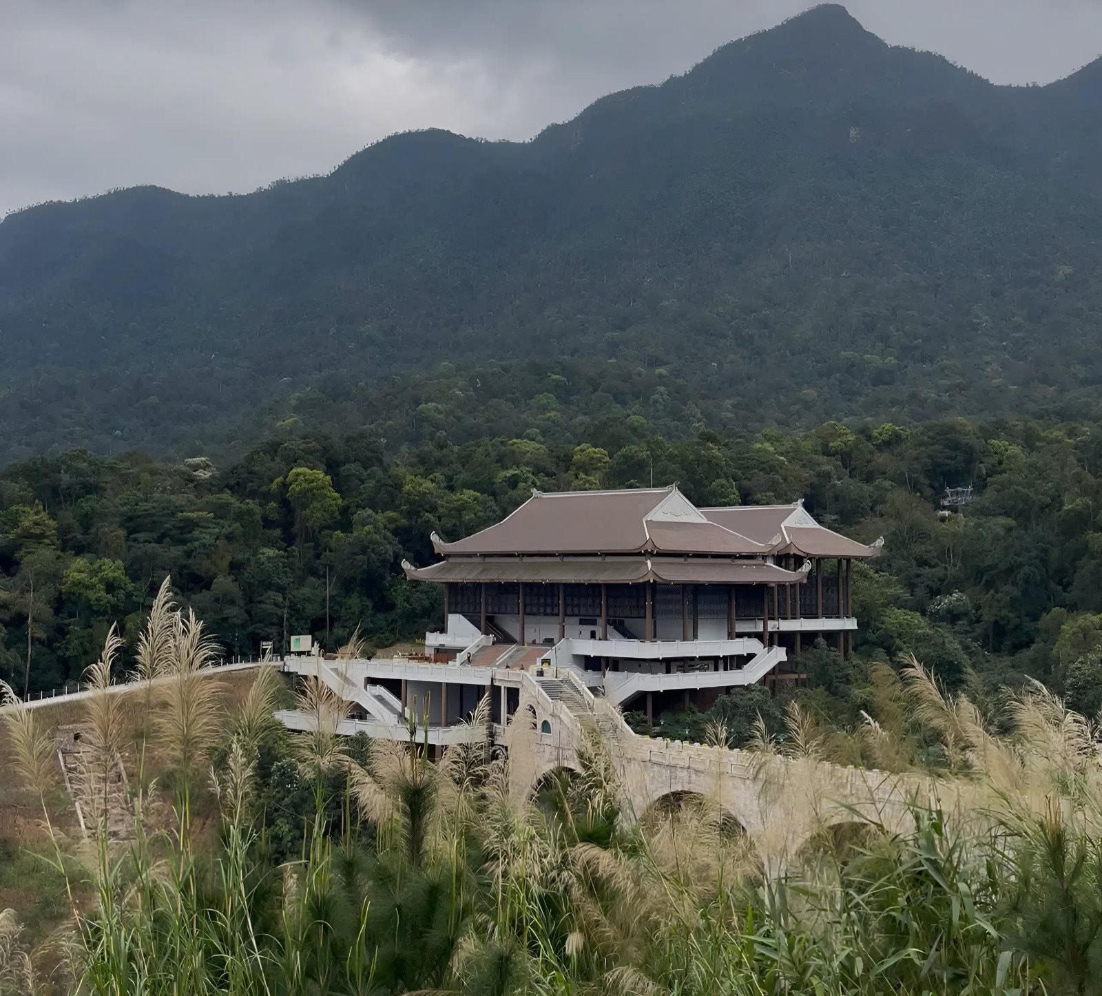 Quần thể chùa Trúc Lâm được xây dựng theo kiến trúc thời Trần, với mái chùa cong, cột gỗ lớn và những khoảng sân rộng nhìn ra rừng núi. Nhiều du khách dành thời gian dạo quanh khuôn viên, ngắm cảnh và tận hưởng bầu không khí trong lành của vùng núi.