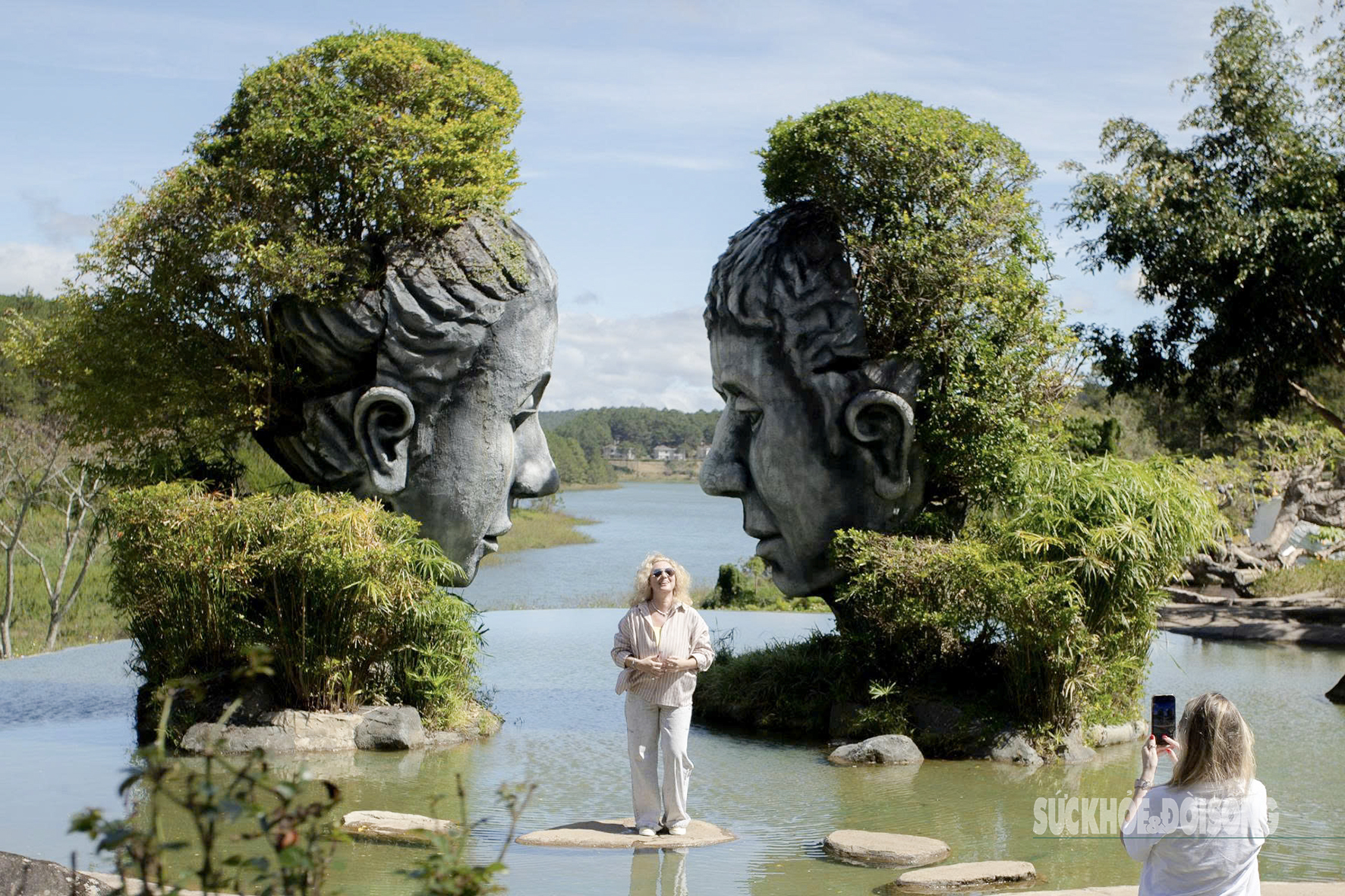 Cụm tượng hai khuôn mặt đối diện trên mặt nước là điểm check-in nổi tiếng.