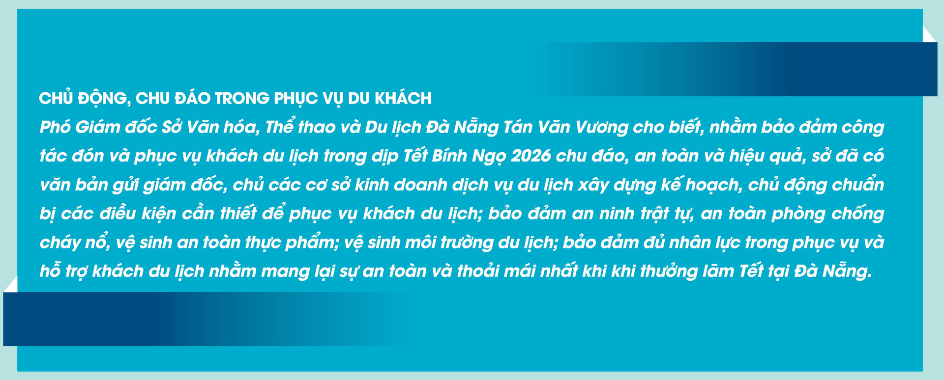 Thông qua các hoạt động trải nghiệm như gói bánh chưng, bánh tét, làm mứt cổ truyền hay trò chơi dân gian, thành phố mong muốn tạo sự gắn kết giữa người dân và du khách, đồng thời quảng bá hình ảnh du lịch biển Đà Nẵng gắn với đời sống văn hóa bản địa.