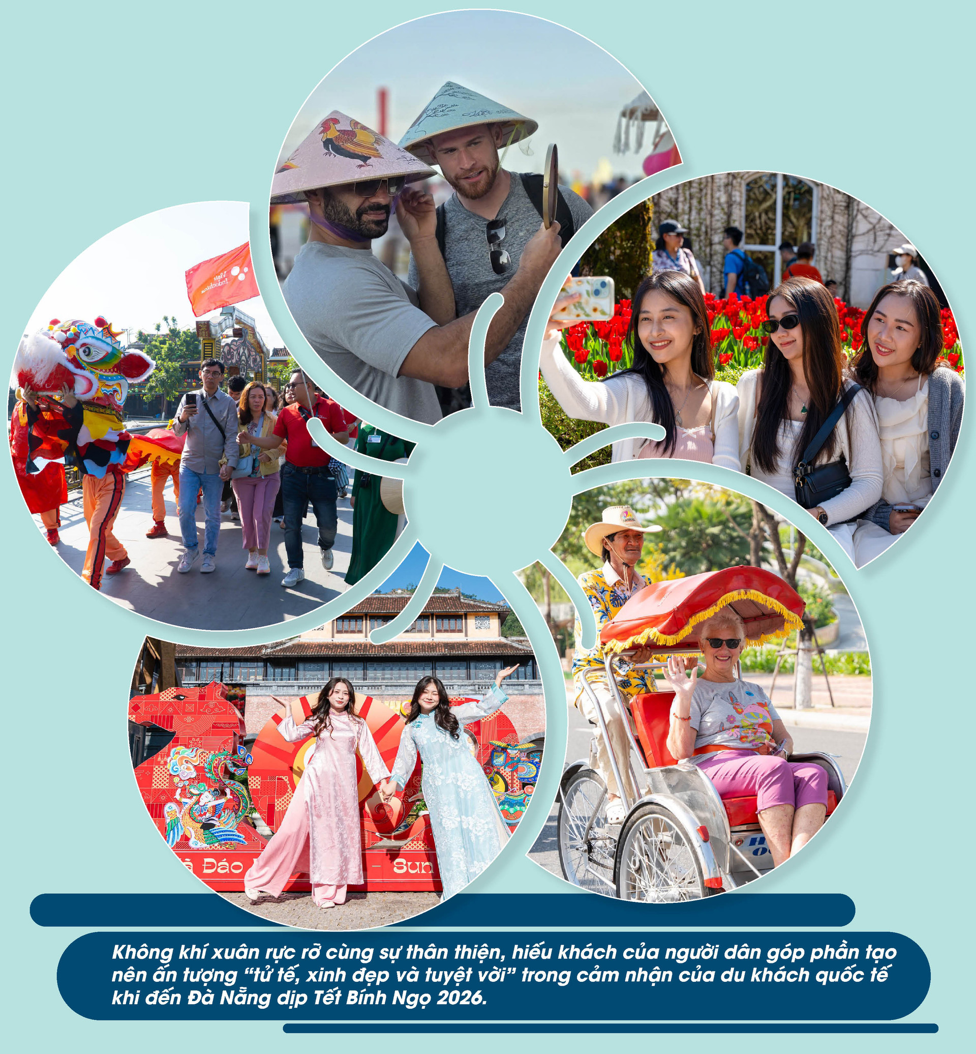 Các khu vực trang trí mang đậm dấu ấn Tết cổ truyền, cùng sự đón tiếp thân thiện của người dân và lực lượng phục vụ, đã để lại ấn tượng đầu tiên đầy ấm áp, vui tươi cho du khách quốc tế.