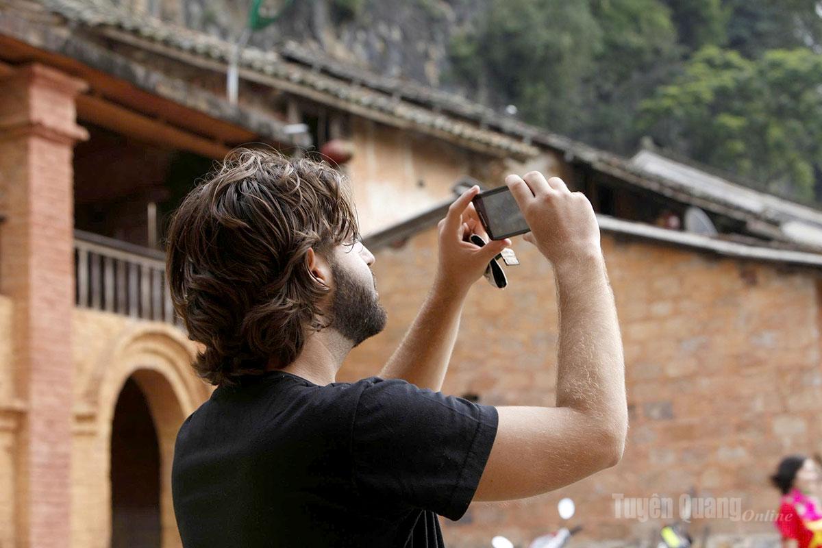 Một khách nước ngoài say sưa bắt những khoảnh khắc đẹp của cao nguyên đá.