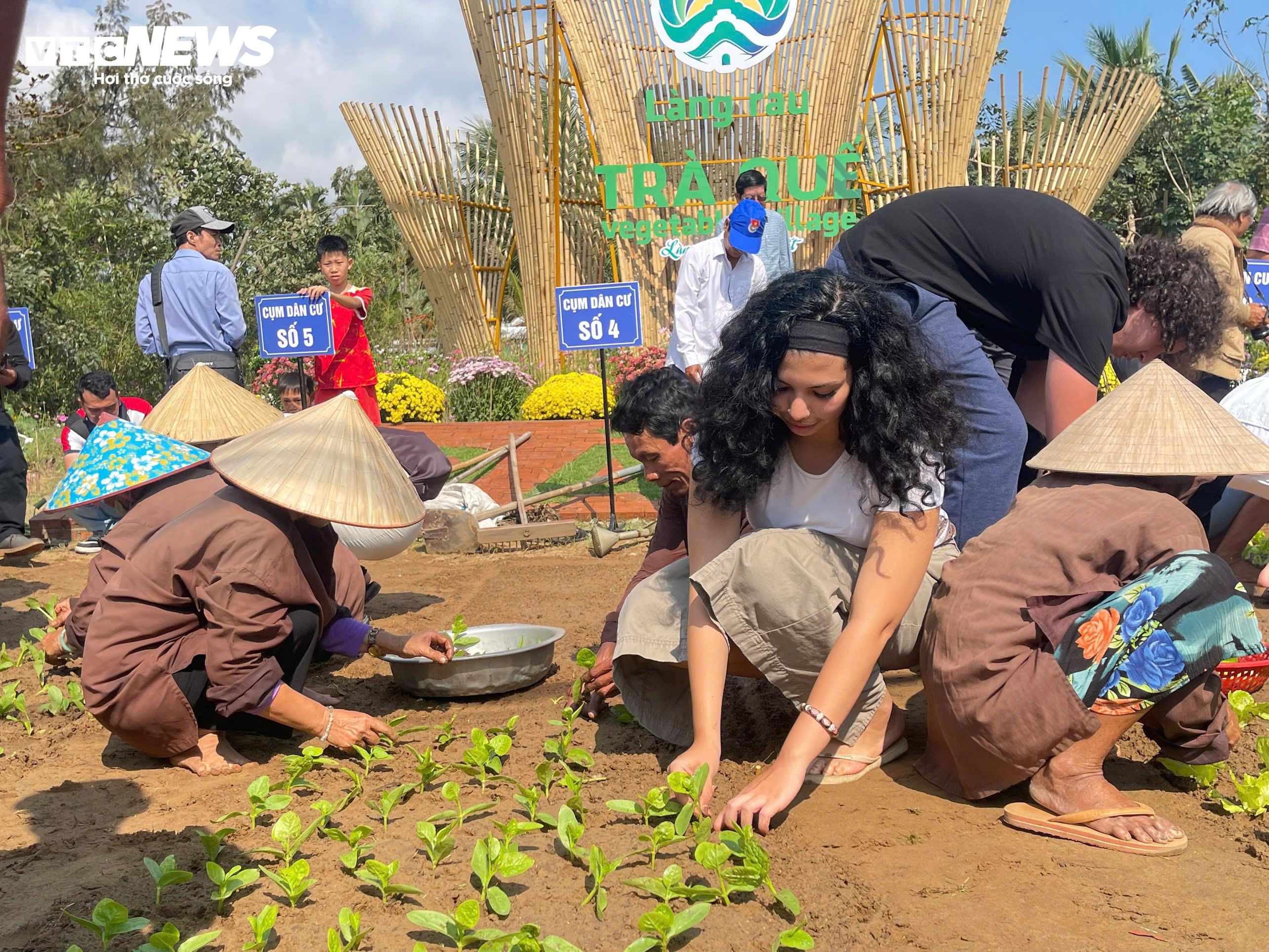 Tại khoảnh đất nhỏ nằm giữa cánh đồng rau sạch, những vị khách quốc tế bày tỏ sự thích thú khi "sắm vai" nông dân. Hòa mình vào hội thi, du khách nước ngoài hào hứng cầm cuốc, gánh nước tưới rau và không quên ghi lại những hình ảnh ấn tượng khi tham quan làng rau sạch nức tiếng miền Trung đúng vào dịp lễ hội.