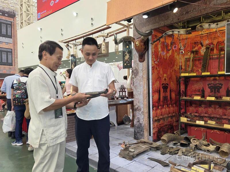Anh Hưng tìm hiểu các sản phẩm chế tác từ sừng tại "Tinh hoa Thu Hà Nội".