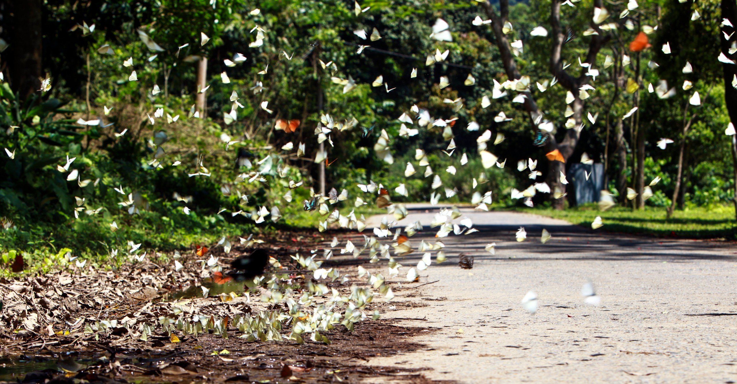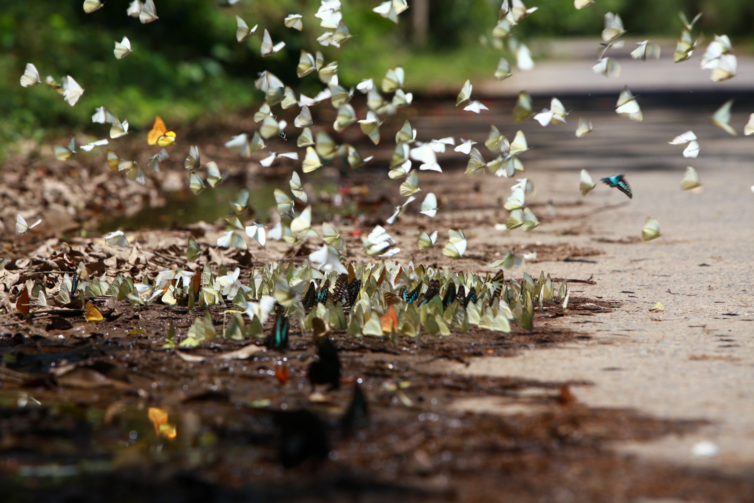 Ngay từ lối dẫn vào cửa rừng và dọc các tuyến đường rải nhựa, du khách đã có thể bắt gặp những đàn bướm bay rợp trời. Rừng Cúc Phương hiện là nơi sinh sống của hơn 400 loài bướm, trong đó phổ biến nhất là bướm trắng.