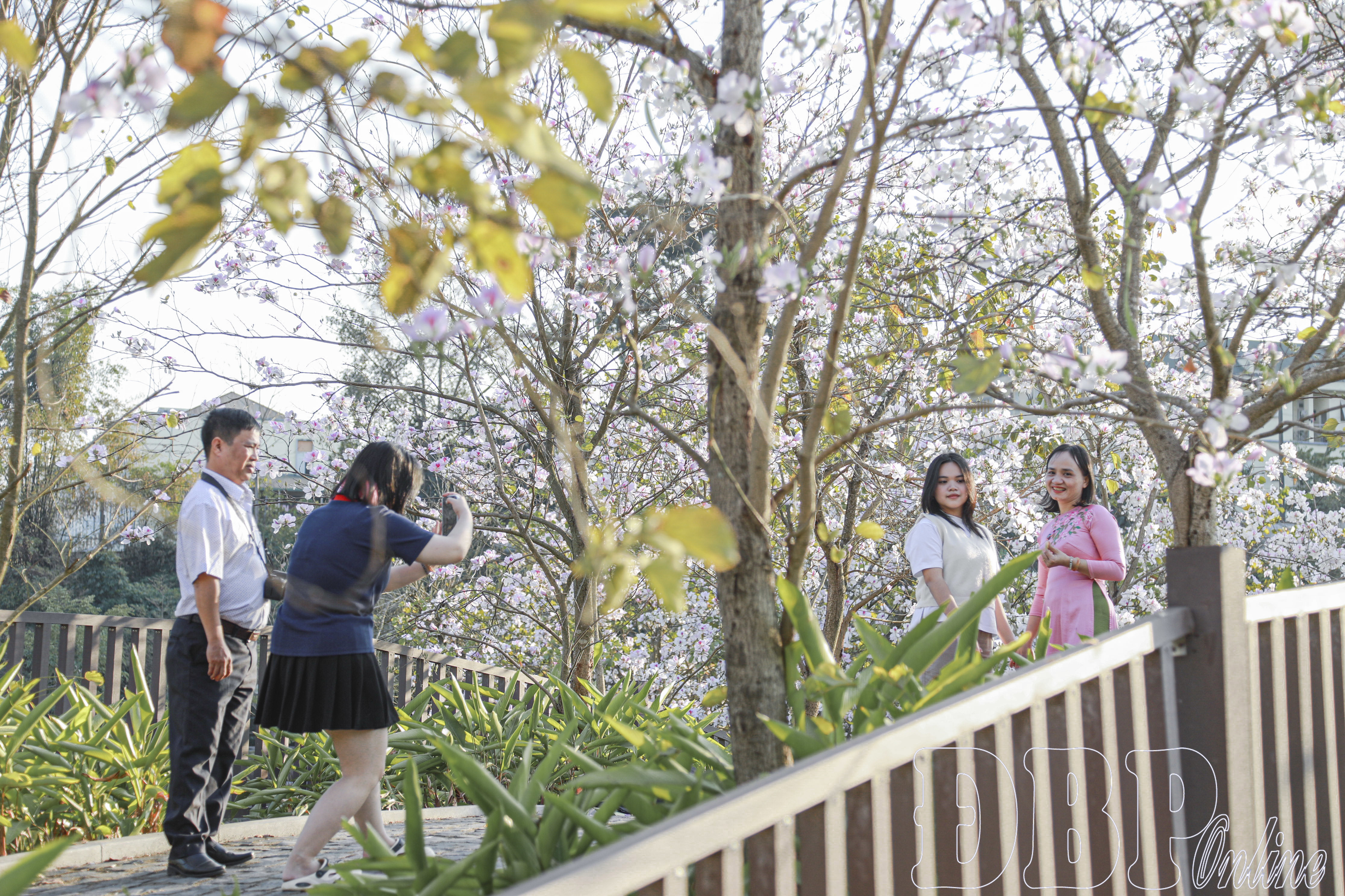 Du khách Đồng Nai chụp ảnh, lưu lại khoảnh khắc đẹp về hoa ban tại Điện Biên.