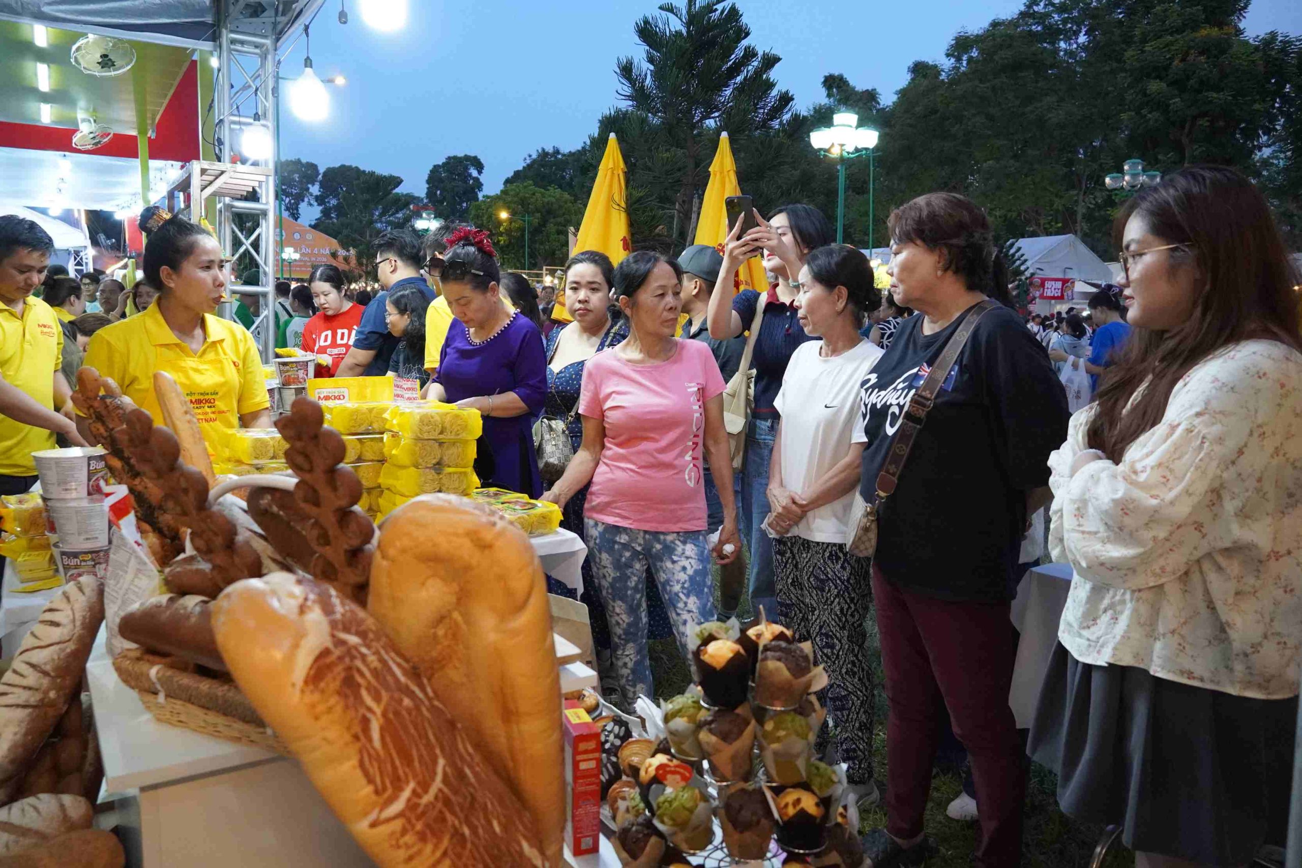 Ngoài bánh mì truyền thống, nhiều phiên bản biến tấu được giới thiệu, thu hút sự chú ý của thực khách. Các khu ăn uống, check-in và trưng bày luôn kín chỗ. Ảnh: Nguyên Phong