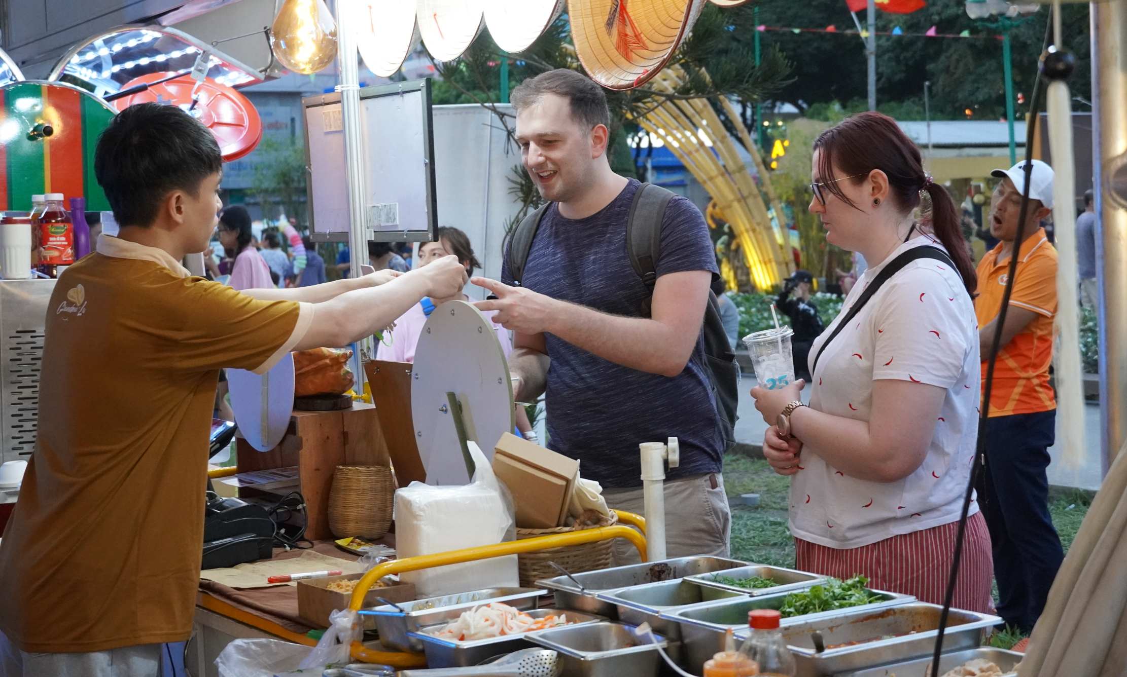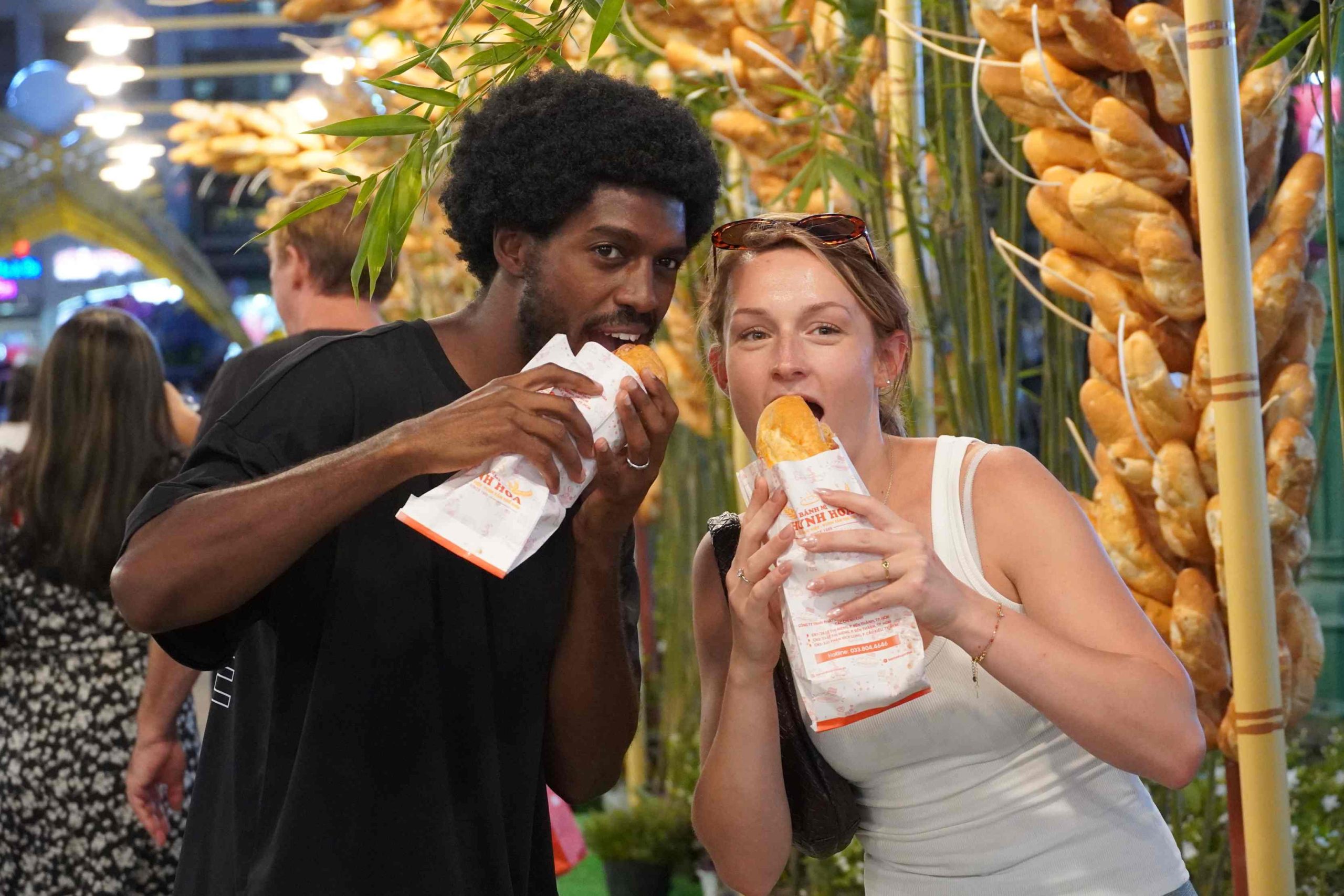 Lễ hội ghi nhận lượng lớn du khách quốc tế. Chị Margaux, du khách Pháp, cho biết ấn tượng với cách biến tấu bánh mì Việt Nam. Ảnh: Nguyên Phong