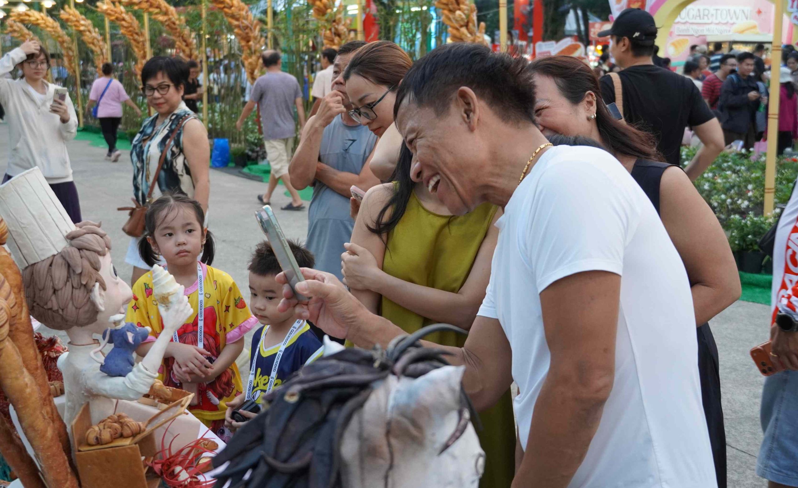 Điểm nhấn của sự kiện là con đường bánh mì và mô hình tháp Eiffel làm từ bánh mì, thu hút đông đảo khách tham quan, chụp ảnh. Các hoạt động bên lề như tọa đàm, thi tay nghề và chương trình thiện nguyện góp phần làm rõ chủ đề giao thoa văn hóa. Ảnh: Nguyên Phong