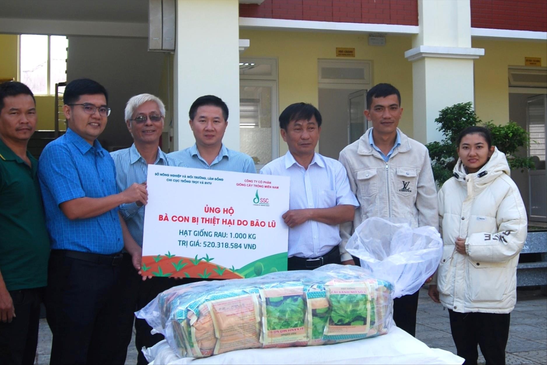 Sở Nông nghiệp và Môi trường Lâm Đồng phối hợp với đơn vị tài trợ trao ủng hộ hạt giống rau cho nông dân xã D'ran. Ảnh: Tư liệu