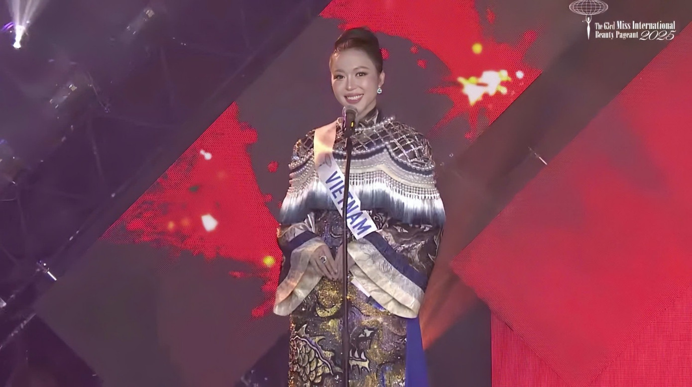 Chiều muộn ngày 27/11 (theo giờ Việt Nam), Chung kết Miss International 2025 diễn ra tại Nhật Bản. Buổi thi mở đầu với phần hô tên trong trang phục dân tộc. Đại diện Việt Nam là Hoa hậu Nguyễn Ngọc Kiều Duy diện thiết kế Cửu Long Ẩn Vân, búi tóc cao. Trên sân khấu, người đẹp tự hào hô tên mình và quê hương Vĩnh Long, Việt Nam.