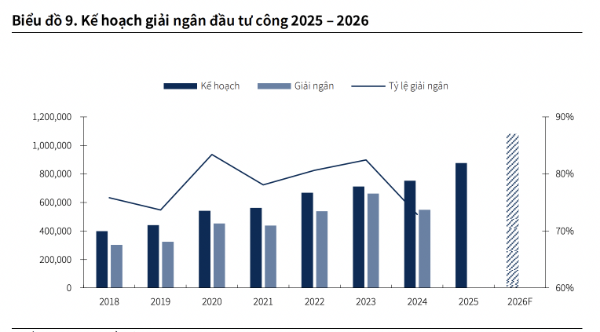 Năm 2026 là năm cao điểm của đầu tư công nhờ nguồn vốn phân bổ cho đầu tư công 2026 dự kiến ở mức 1,08 triệu tỷ đồng nhằm đạt mục tiêu GDP tăng trưởng 10% và luật Xây dựng sửa đổi mới được thông qua đơn giản hóa thủ tục phê duyệt kỳ vọng tác động tích cực đến tiến độ triển khai dự án.