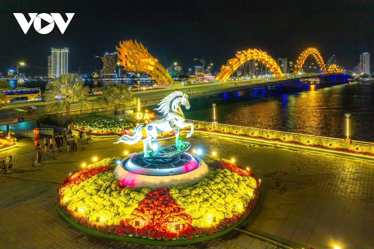 Linh vật ngựa tại bờ Tây cầu Rồng Đà Nẵng, điểm nhấn phục vụ người dân và du khách đến tham quan trong dịp Tết này