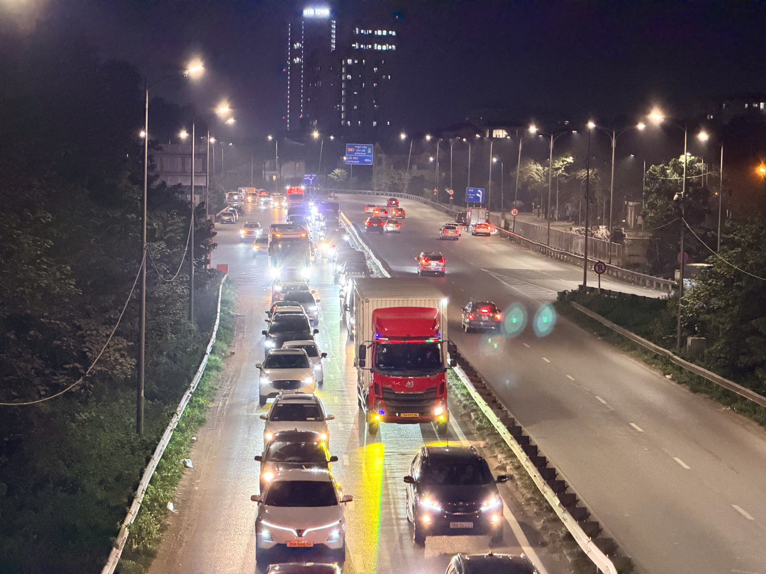 Cảnh đông đúc trên cao tốc Pháp Vân - Cầu Giẽ hướng về Hà Nội khuya 21/2.
