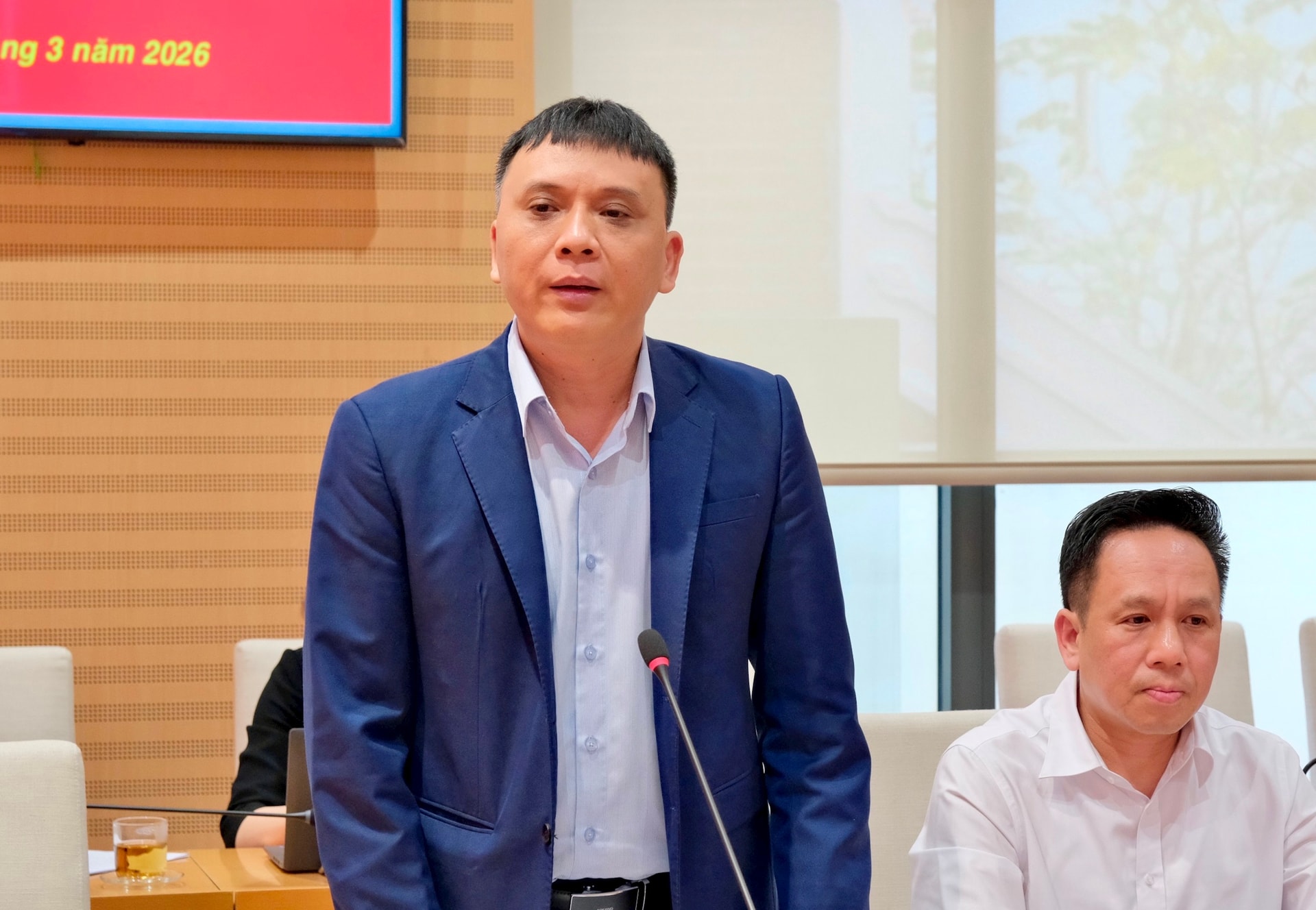 Giám đốc Sở Nội vụ Hà Nội Nguyễn Minh Long báo cáo tại phiên họp. Ảnh: Bảo Chi