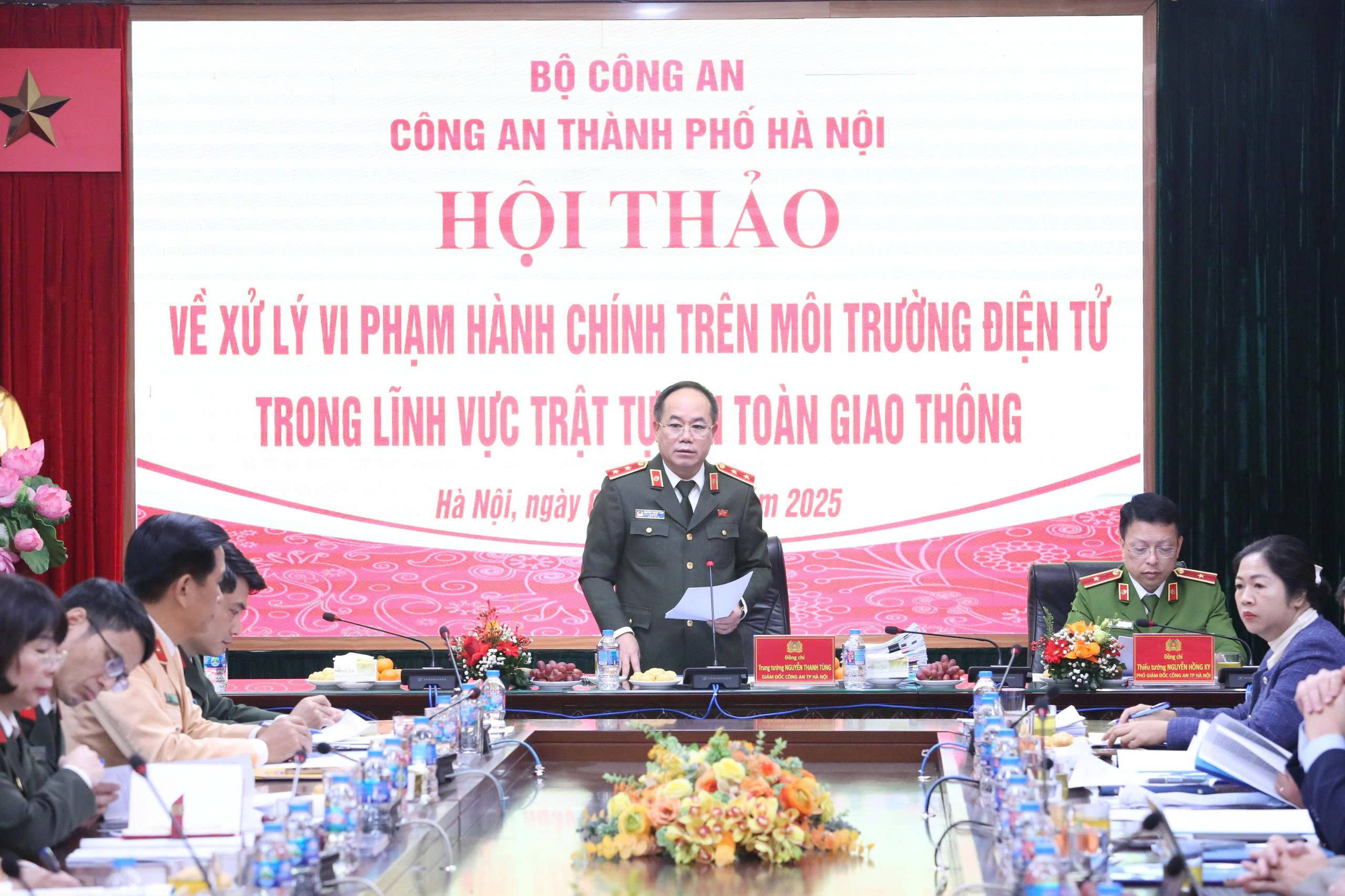 Đại tá Trần Đình Nghĩa, Trưởng phòng CSGT Công an TP Hà Nội báo cáo thực trạng và công tác xử lý vi phạm hành chính về trật tự an toàn giao thông, đồng thời nêu rõ: "Trong bối cảnh hạ tầng giao thông thiếu đồng bộ nhưng lưu lượng phương tiện, dân số và hoạt động vận tải tăng nhanh, nhiệm vụ bảo đảm trật tự an toàn giao thông đặt ra cho lực lượng CSGT công an thành phố ngày càng nặng nề".