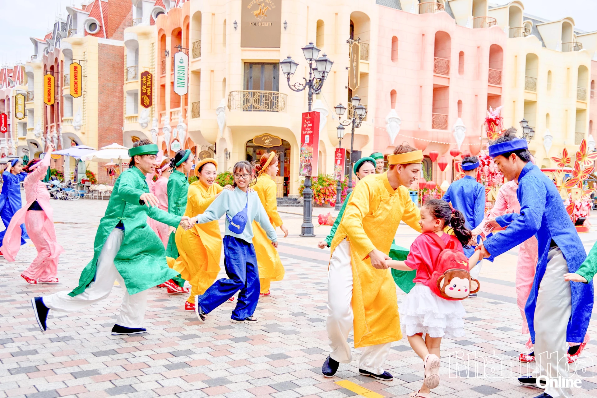 Du khách hào hứng với múa lân khai xuân tại Champa Island Nha Trang.