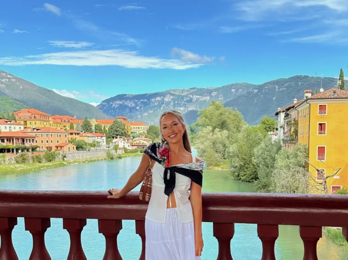 Nữ du khách Chloe Caldwell trong chuyến du lịch một tháng tại châu Âu. Ảnh: BI