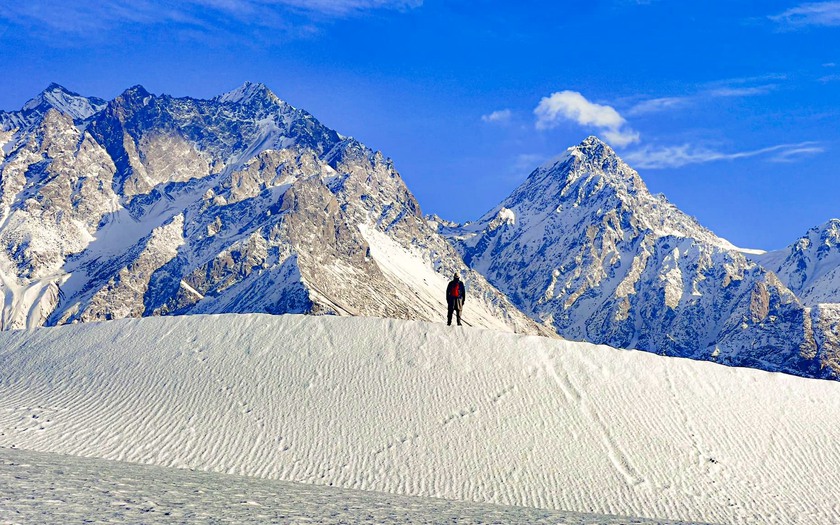 Khi những cồn cát vàng của sa mạc lạnh Katpana ở Skardu, Pakistan khoác lên mình lớp áo trắng tinh khôi của tuyết, vẻ đẹp tĩnh lặng và sức hấp dẫn hoang sơ biến nơi đây trở thành một điểm đến mùa đông kỳ diệu. Ảnh: Muhammad Arif Baltistani