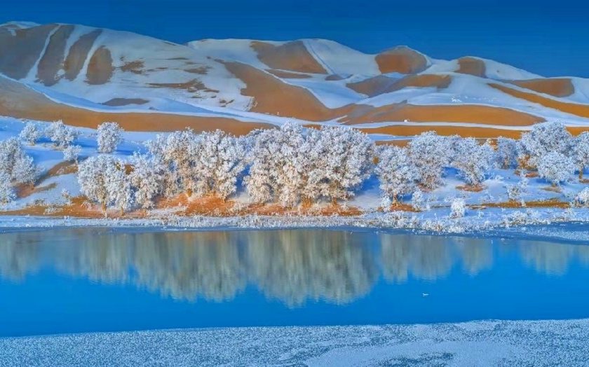 Thời điểm tốt nhất để khách du lịch ghé thăm sa mạc Taklamakan (tại Tân Cương, Trung Quốc) với hy vọng "săn" tuyết sa mạc là vào khoảng từ cuối tháng 12 tới tháng 2. Ảnh: Xinhua