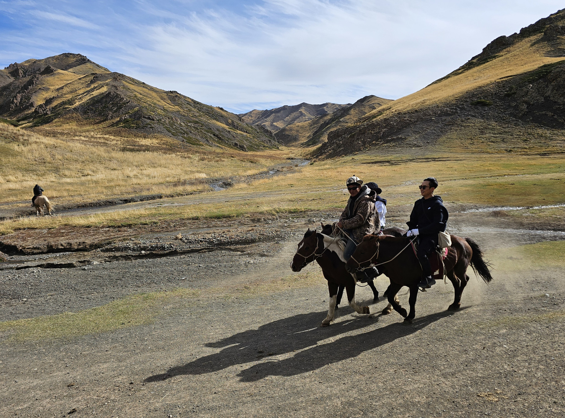 Chúng tôi vào bãi chăn, thuê 4 con ngựa và 1 nài ngựa (horse wrangler) dẫn đường. Tổng chi phí là 100.000 MNT (đơn vị tiền tệ của Mông Cổ), tương đương 750 ngàn VNĐ. Chúng tôi lên ngựa, mỗi người một con, bám sát ngựa của người dẫn đường, tiến vào trong hẻm núi. Trên những đoạn đường hiểm trở, ngựa đi từng bước một, nhưng ở đoạn đường bằng, thì ngựa phi nước kiệu, khiến cho người cưỡi ngựa lần đầu như tôi bị xóc, phải cầm chặt dây cương và trụ vững trên yên để tránh văng khỏi mình ngựa.