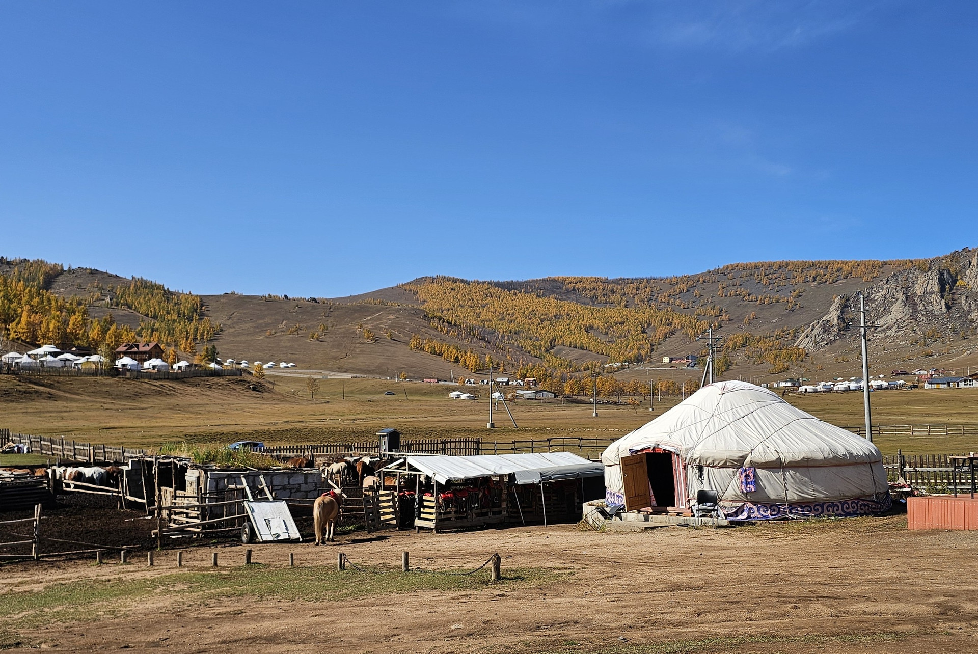 Sau hơn một giờ lái xe từ trung tâm Ulaanbaatar, chúng tôi dừng lại trước cổng một trại ngựa của cộng đồng người Kazak, một sắc dân thiểu số ở Mông Cổ. Đây là nơi cung cấp dịch vụ cưỡi ngựa cho du khách khám phá Công viên quốc gia Terelj, phục vụ các bữa ăn và bán hàng lưu niệm.