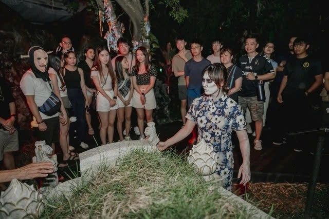 Singapore là điểm đến lý tưởng cho du khách Việt nhờ gần và các lễ hội Halloween hoành tráng. Halloween Horror Nights tại Universal Studios Singapore gây ấn tượng với các ngôi nhà ma và khu “scare zones” hồi hộp. Clarke Quay trở thành bữa tiệc hóa trang ngoài trời, còn đảo Sentosa náo nhiệt với lễ hội Halloween đầy màu sắc. Night Safari – vườn thú bán hoang dã về đêm – mang đến trải nghiệm rùng rợn và thú vị giữa thiên nhiên huyền bí. Ảnh HAW PAR VILLA
