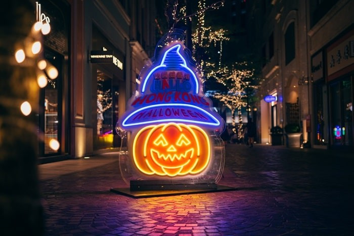 Halloween tại Hồng Kông biến đường phố thành lễ hội sôi động với ánh đèn neon và trang phục sáng tạo. Disneyland Hồng Kông tổ chức Disney Halloween Time với diễu hành và gặp gỡ các nhân vật Disney, trong khi Lan Kwai Fong trở thành đại tiệc hóa trang. Các khu mua sắm như Mong Kok, Tsim Sha Tsui nhộn nhịp với nhà ma, biểu diễn nghệ thuật và sự kiện theo chủ đề. Du khách muốn trải nghiệm nhẹ nhàng có thể đi Big Bus Tour để tận hưởng không khí Halloween về đêm. Ảnh luhanhvietnam