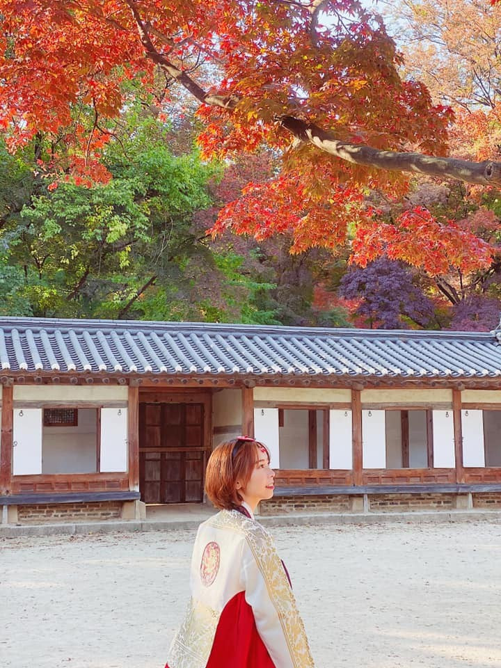 Du khách check-in mùa lá đỏ rực rỡ tại Hàn Quốc. Ảnh @sji_koreabackpacker