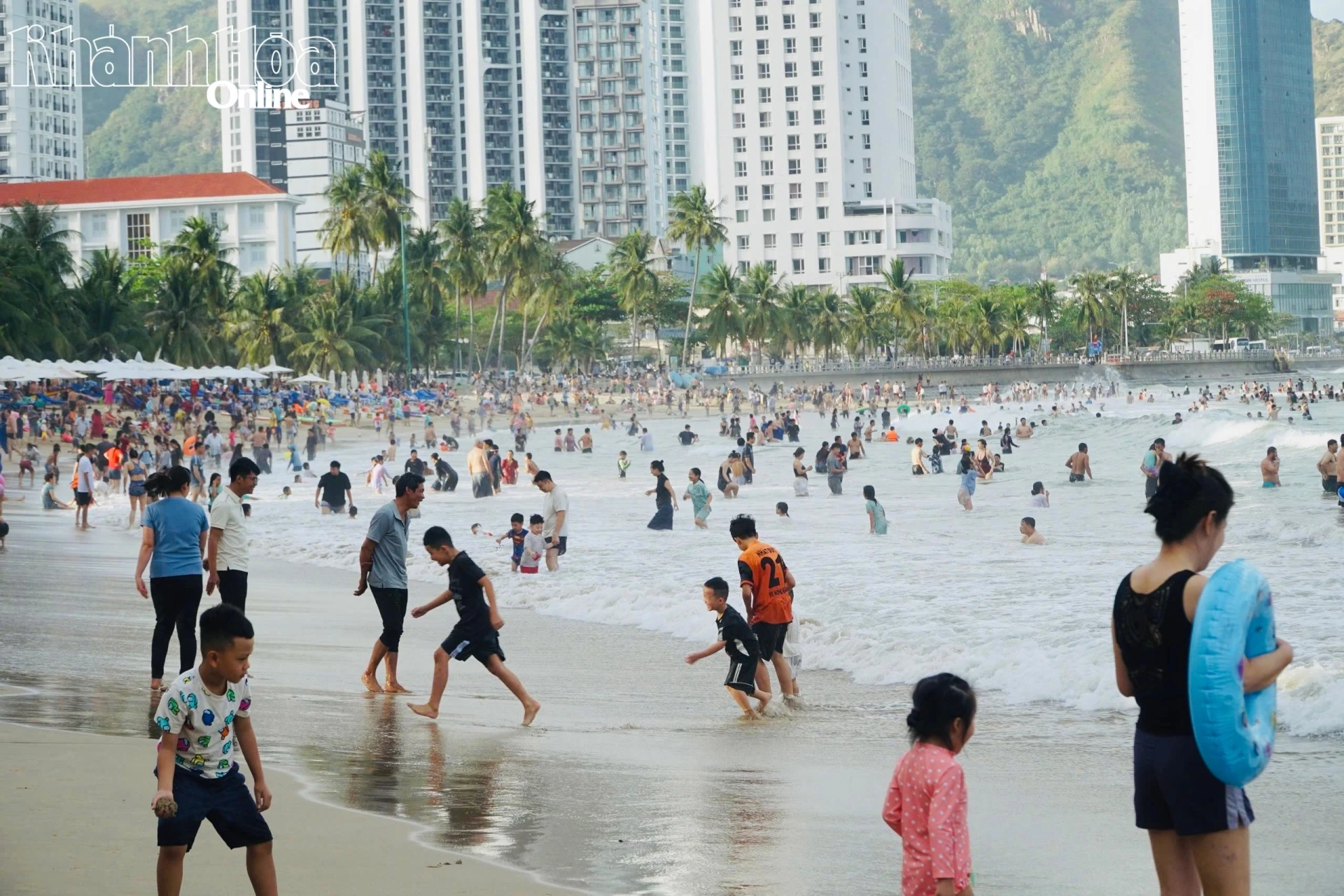 Biển Nha Trang trong những ngày đầu năm mới rất đông đúc.