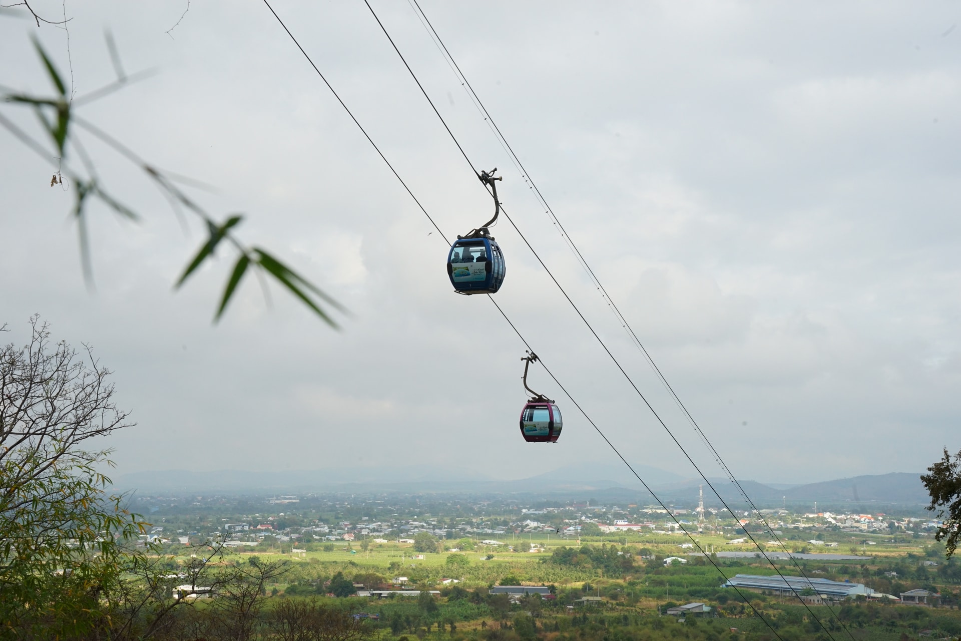 Từ lừng chừng núi Tà Cú có thể chiêm ngưỡng cáp treo và vẻ đẹp yên bình của khu vực này
