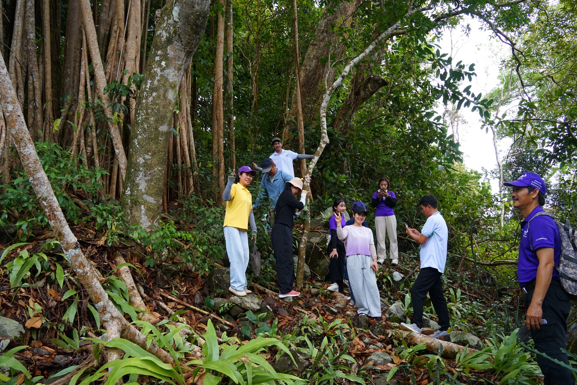 “Cứ vài chục mét lại bắt gặp những cụm cây như vậy, bên cạnh là thảm lan và nhiều loài thực vật lạ, tạo nên cảnh quan độc đáo”, anh Văn Quang Liêm chia sẻ về chuyến trekking mang lại trải nghiệm đáng nhớ khi được hòa mình vào không gian xanh mát, cảm nhận rõ nét vẻ đẹp của rừng nguyên sinh.