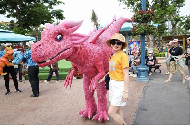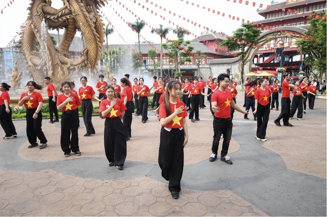 Không gian rực rỡ cờ hoa trải dọc từng góc của khu du lịch. Các hoạt động tương tác đặc biệt dành riêng cho ngày lễ như show ảo thuật kỳ thú, Gặp gỡ gia đình Rồng… khiến nhiều du khách thích thú.
