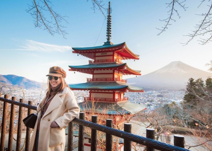 Du khách chụp ảnh ở chùa Chureito, Nhật Bản. Ảnh: Matador