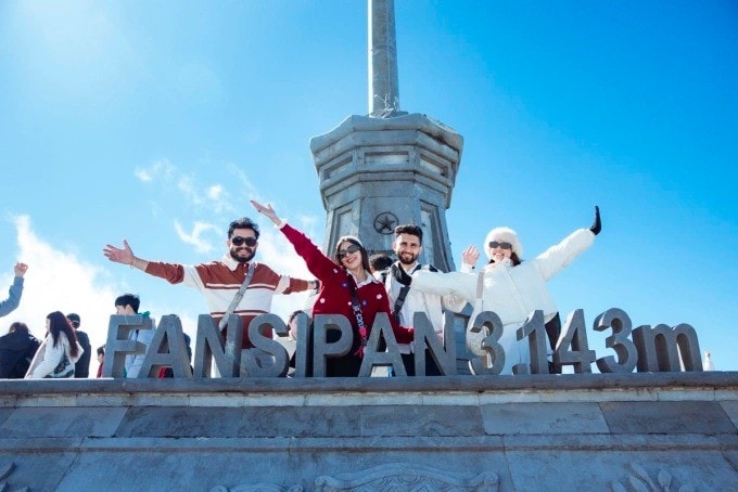 Du khách check-in cùng cột mốc Nóc nhà Đông Dương trên đỉnh Fansipan