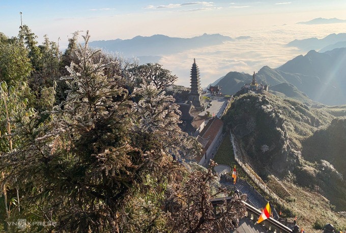 Băng giá phủ trắng đỉnh Fansipan là hiện tượng thường gặp trong dịp đầu năm